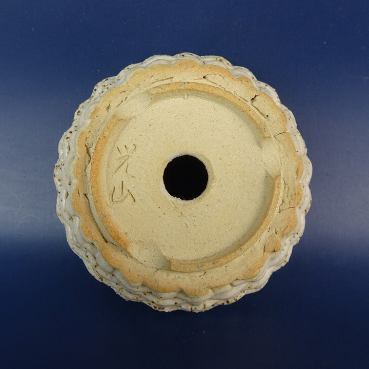 盆栽鉢 光山 小鉢 長辺 約9.7cm 丸鉢 縄縁 籠編 釉薬 新品鉢 l1198406782