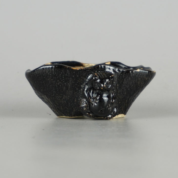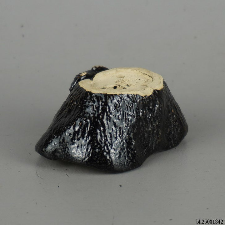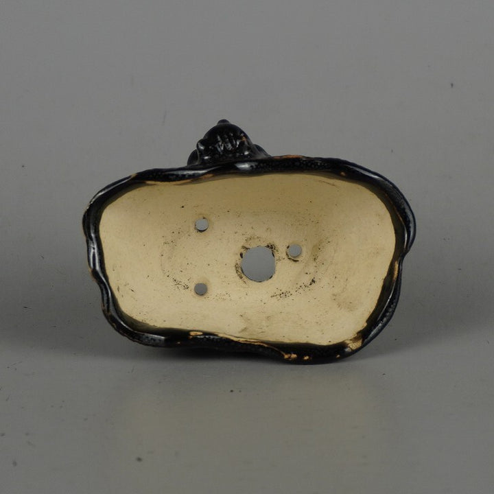 盆栽鉢 卓道 小鉢 長辺 約 7cm 変形 楕円鉢 狸付 たぬき タヌキ 釉薬 観賞用 新品 j1198418205