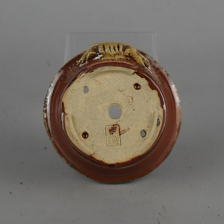 盆栽鉢 卓道 小鉢 長辺 約 8.8cm 丸鉢 蟹付 かに カニ 釉薬 観賞用 新品 r1198410659