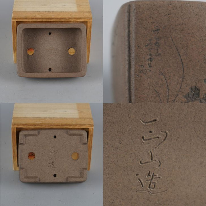盆栽鉢 壺堂 小型 長辺 約10.3cm 長方鉢 彫入 四君子 共箱 共布 観賞用 現品 新品 品名壺堂 (共箱・共布)...
