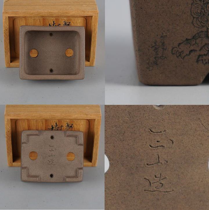 盆栽鉢 壺堂 小鉢 長辺 約8.2cm長方鉢 彫入 獅子 共箱 共布 観賞用 現品 新品 品名壺堂 (共箱・共布)...