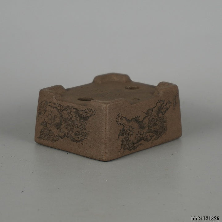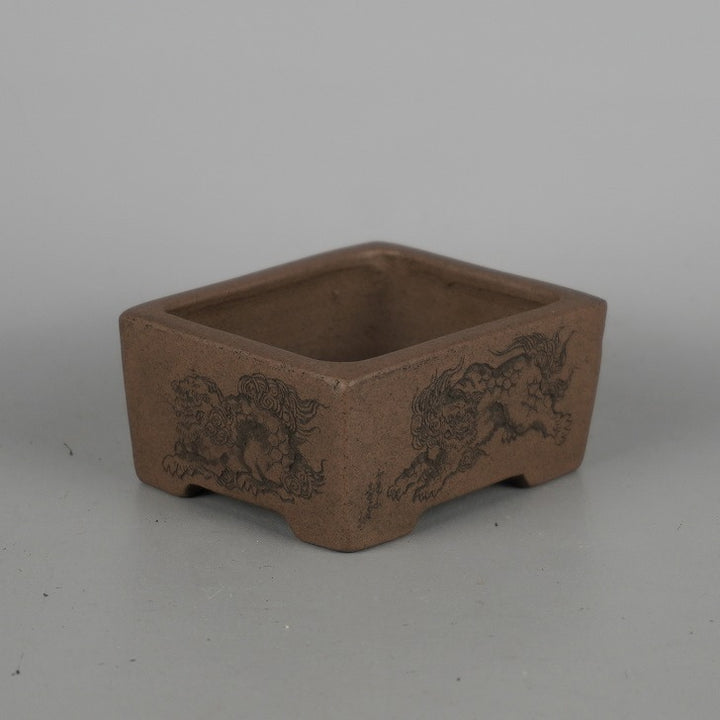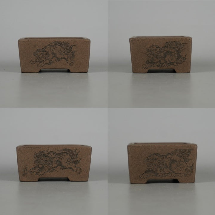盆栽鉢 壺堂 小鉢 長辺 約8.2cm長方鉢 彫入 獅子 共箱 共布 観賞用 新品 m1198409766