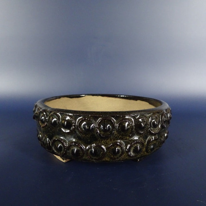 盆栽鉢 夢寿蔵 小型 長辺 約10cm 丸鉢 鋲打 切足 新品 m1198411809