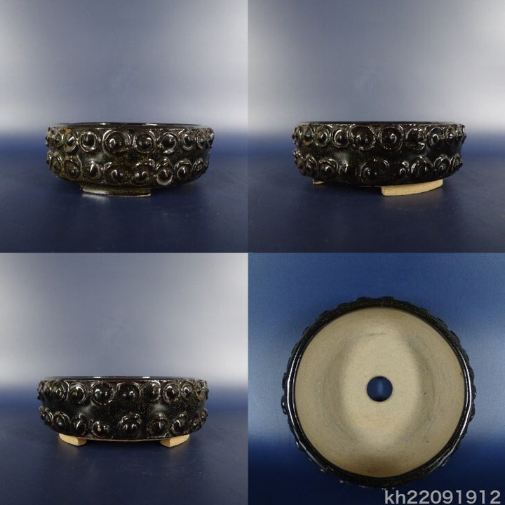 盆栽鉢 夢寿蔵 小型 長辺 約10cm 丸鉢 鋲打 切足 現品 新品 品名夢寿蔵 サイズ高さ 約3.5センチ 横幅 約10センチ 奥行 約10センチ...