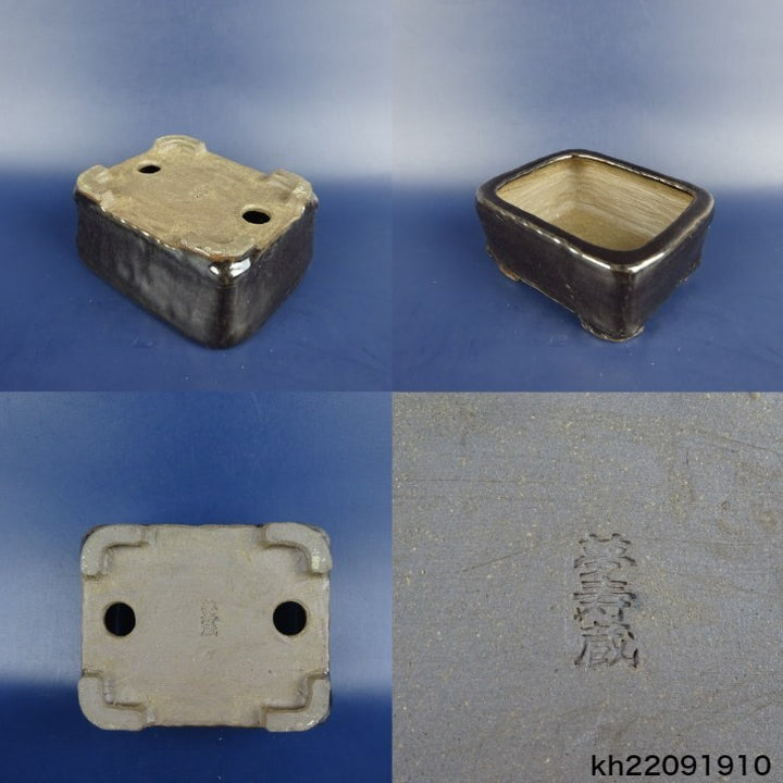 盆栽鉢 夢寿蔵 小型 長辺 約10cm 長方鉢 切足 釉薬 新品 s1198415412