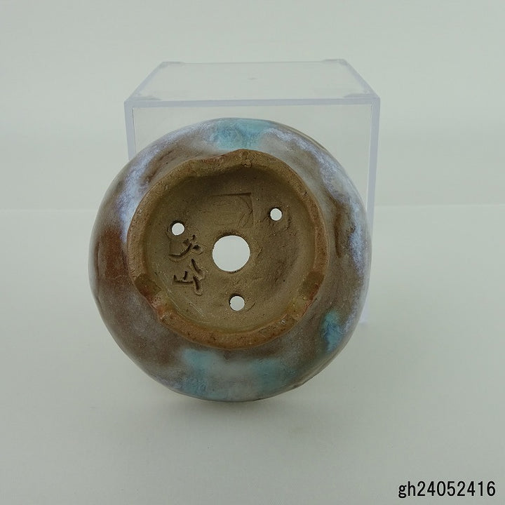 盆栽鉢 大山 大久保 欣三郎 小鉢 長辺 約8.3cm 丸鉢 釉薬 新品 p1198419869