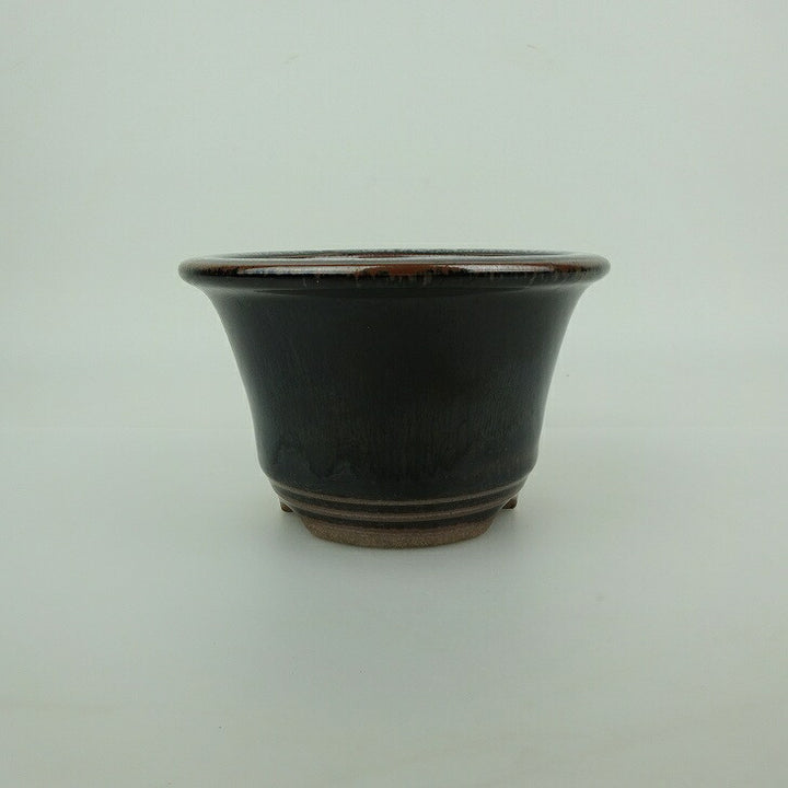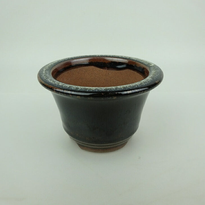盆栽鉢 小石原焼 小型 長辺 約11.7cm 丸鉢 外縁 下帯 釉薬 観賞用 新品 o1198429704