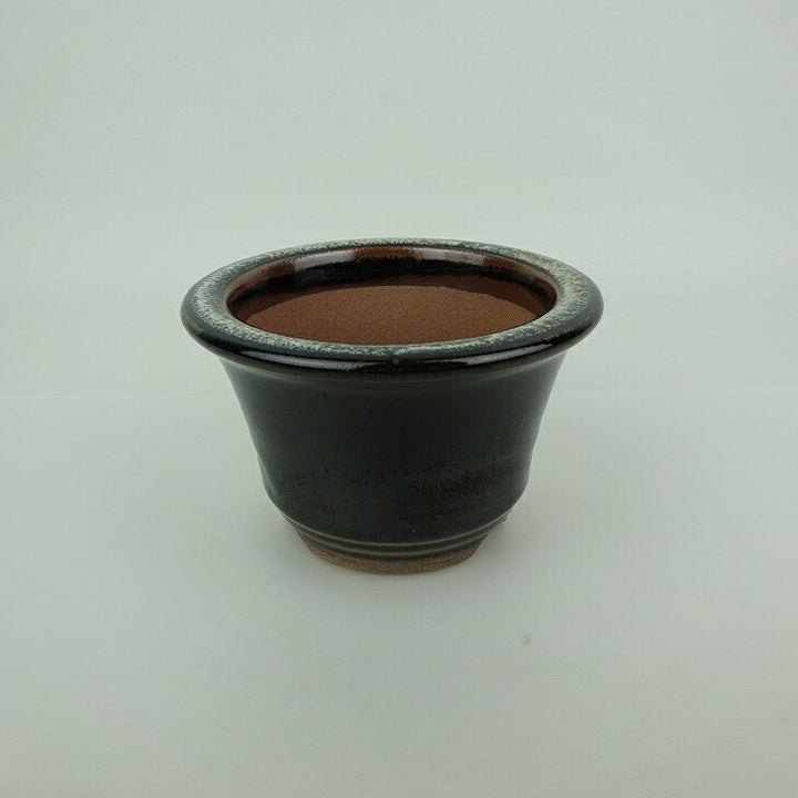 盆栽鉢 小石原焼 小型 長辺 約11.7cm 丸鉢 外縁 下帯 釉薬 観賞用 新品 u1198423342