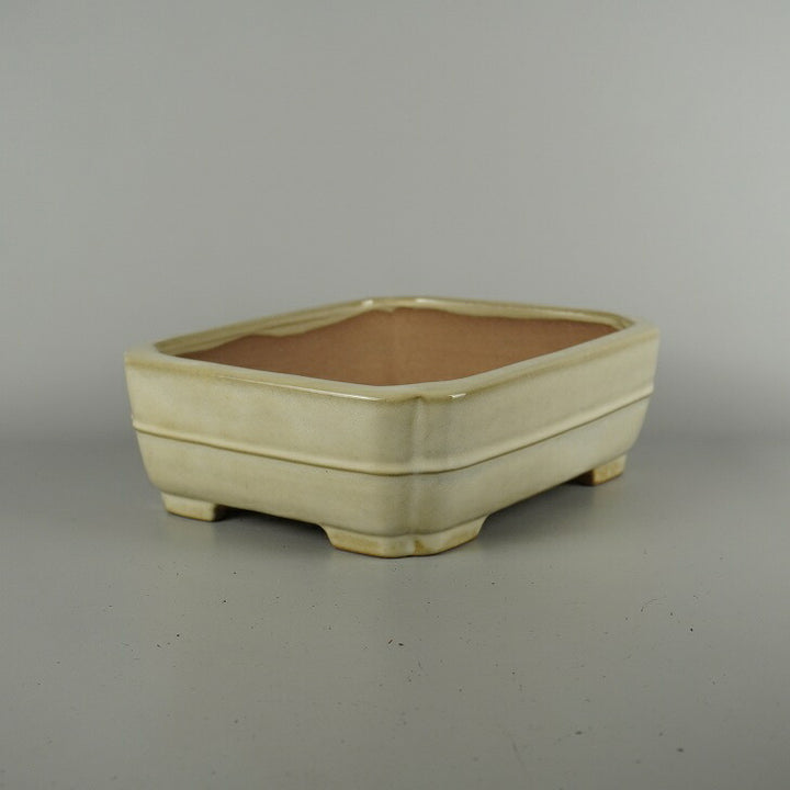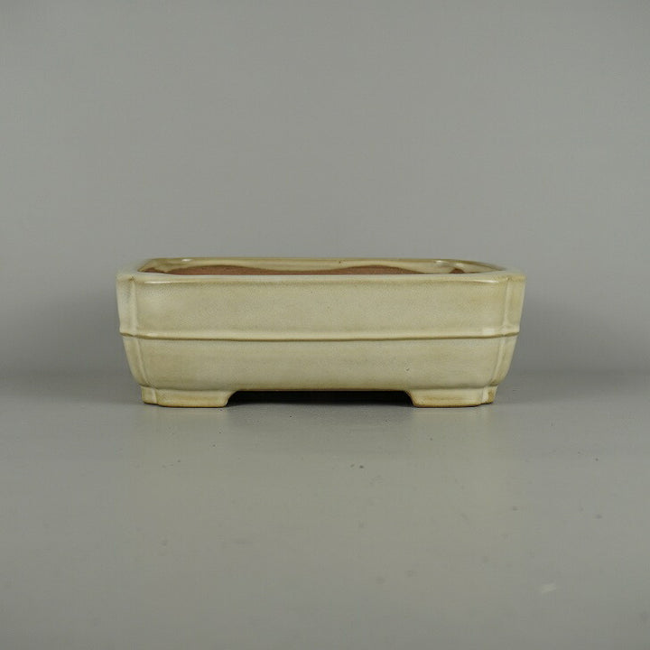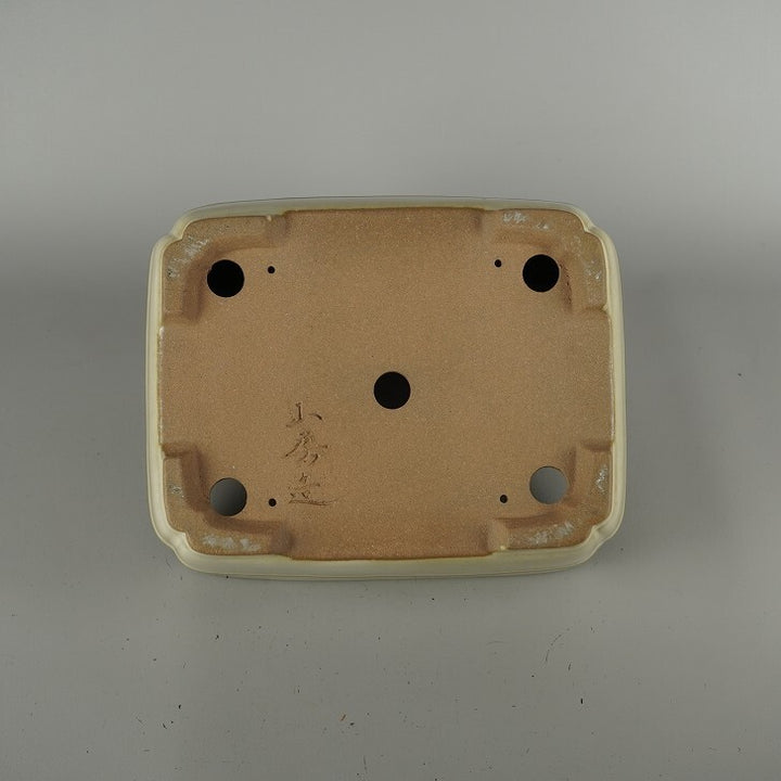盆栽鉢 山房造 中型 長辺 約 24.5cm 長方鉢 隅入 中帯 釉薬 新品 x1202076094