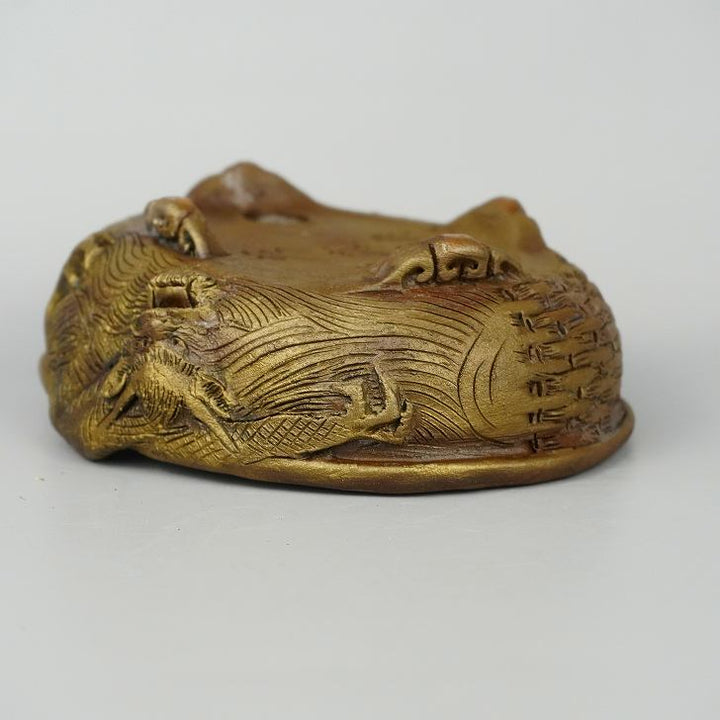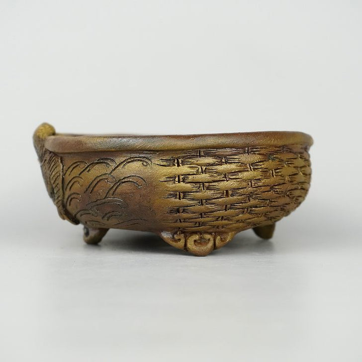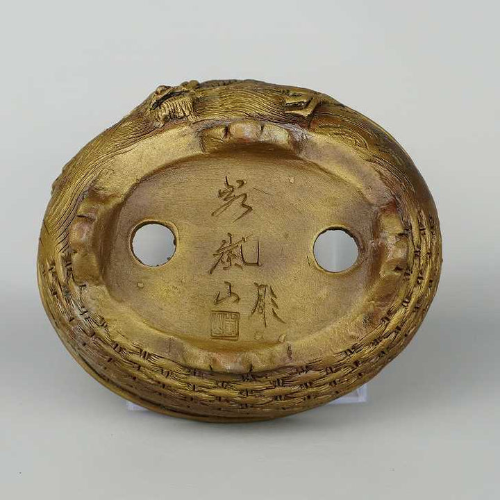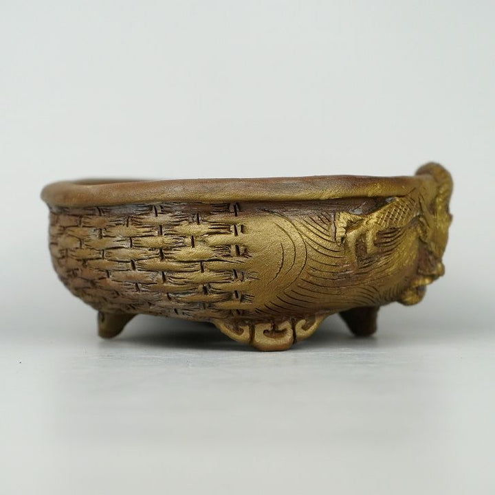 盆栽鉢 嵐山 谷嵐山 小型 長辺 約13cm 楕円鉢 雲足 浮彫 龍図 籠目 竜 リュウ 観賞用 新品 s1198412983