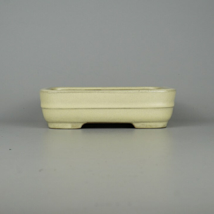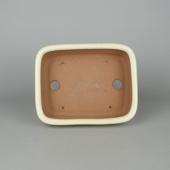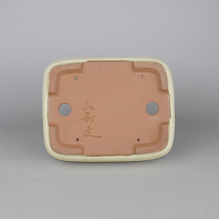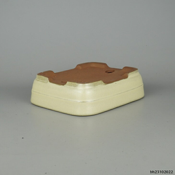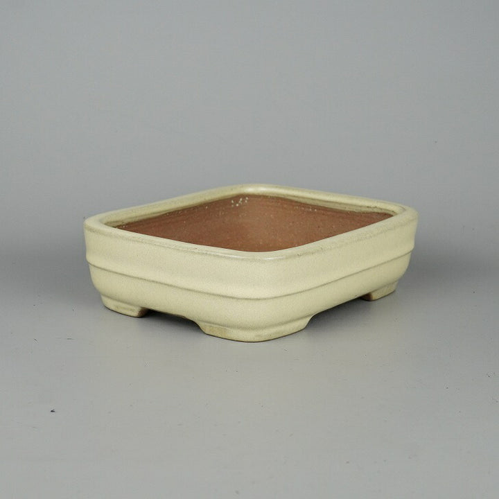 盆栽鉢 常滑 山房造 小型 長辺 約18.8cm 長方鉢 撫角 切立 中帯 白釉 釉薬 新品 数量物 c1198410566