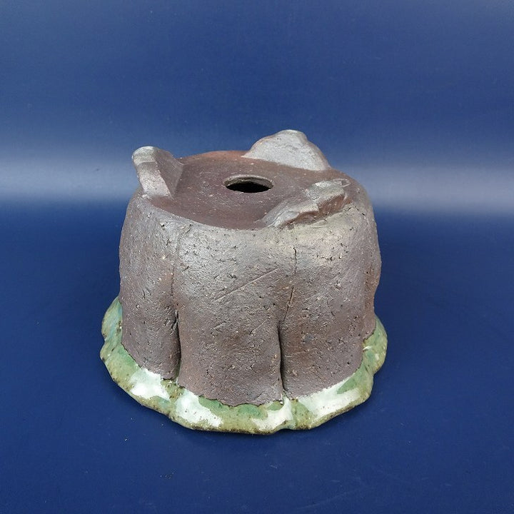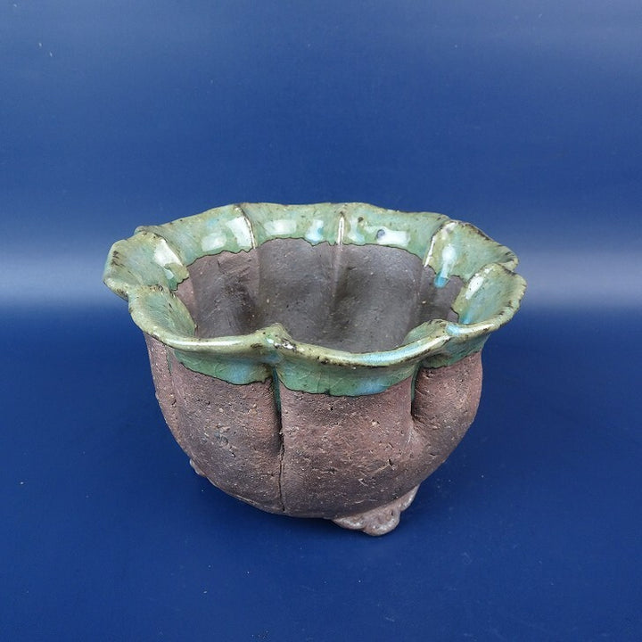 盆栽鉢 常滑 片 片岡 美津江 小型 長辺 約13.3cm 輪花 深鉢 焼〆 釉薬 新品 数量物 u1198428869