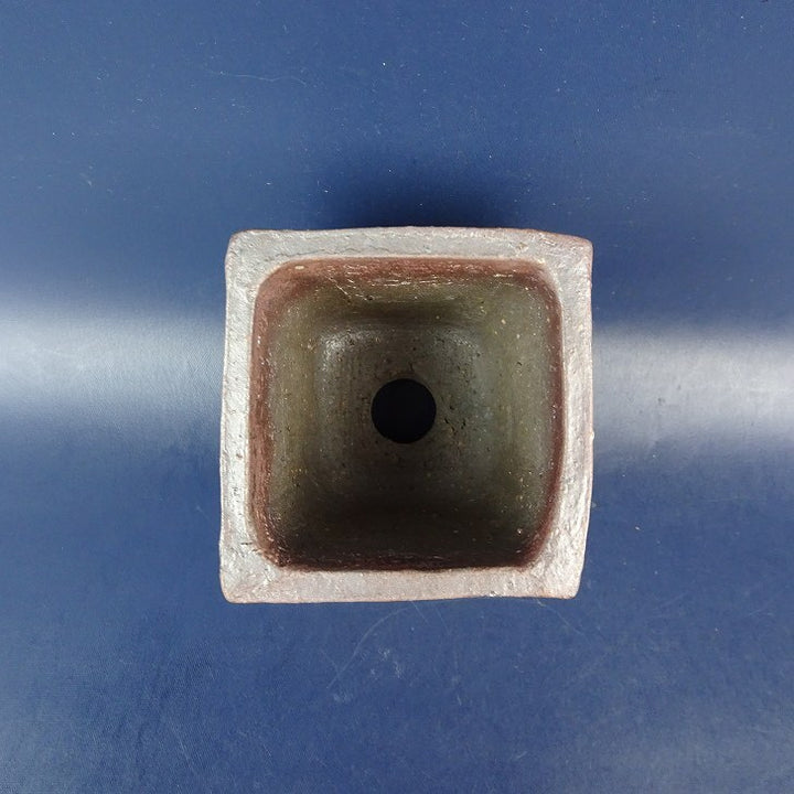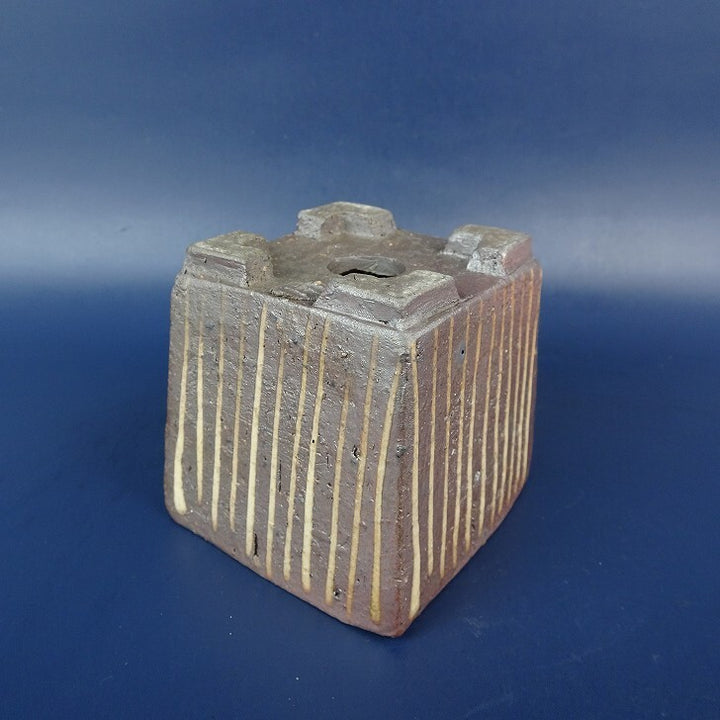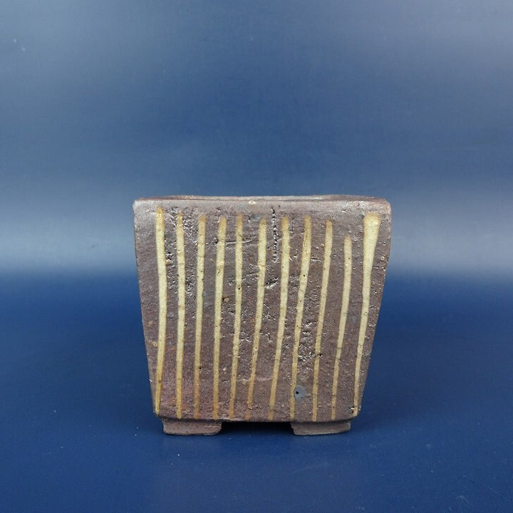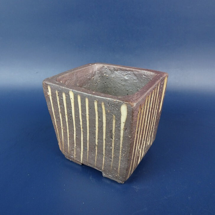 盆栽鉢 常滑 片 片岡 美津江 小鉢 長辺 約6.5cm 正方鉢 縦縞 模様 焼〆 角小鉢 新品 数量物 x1198412827