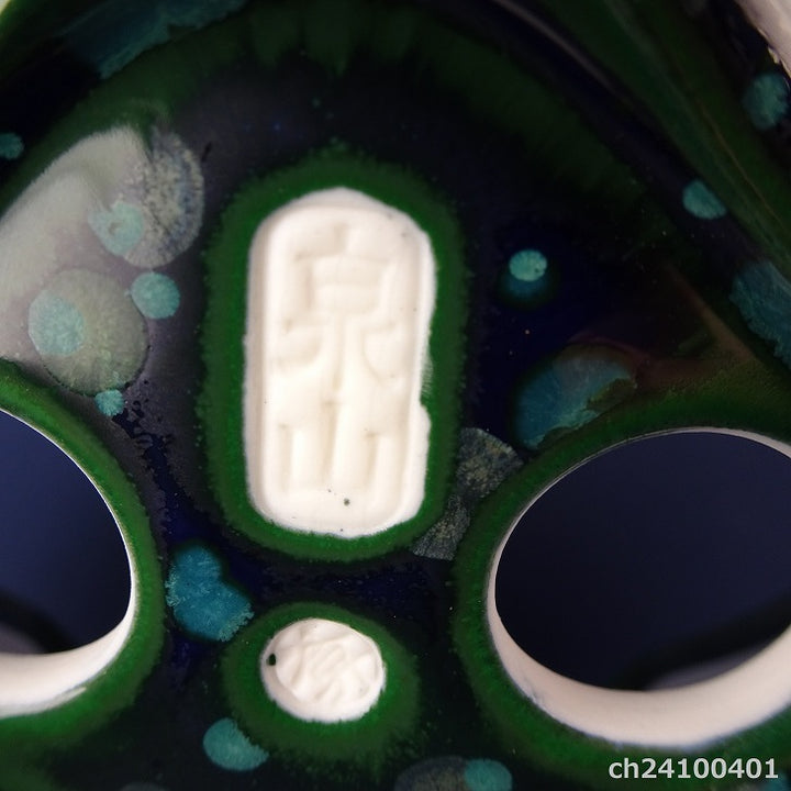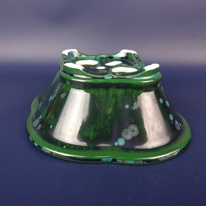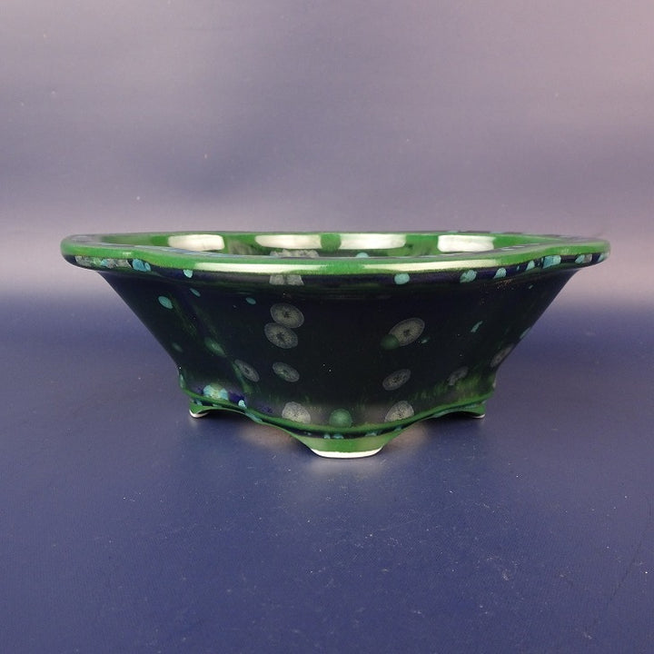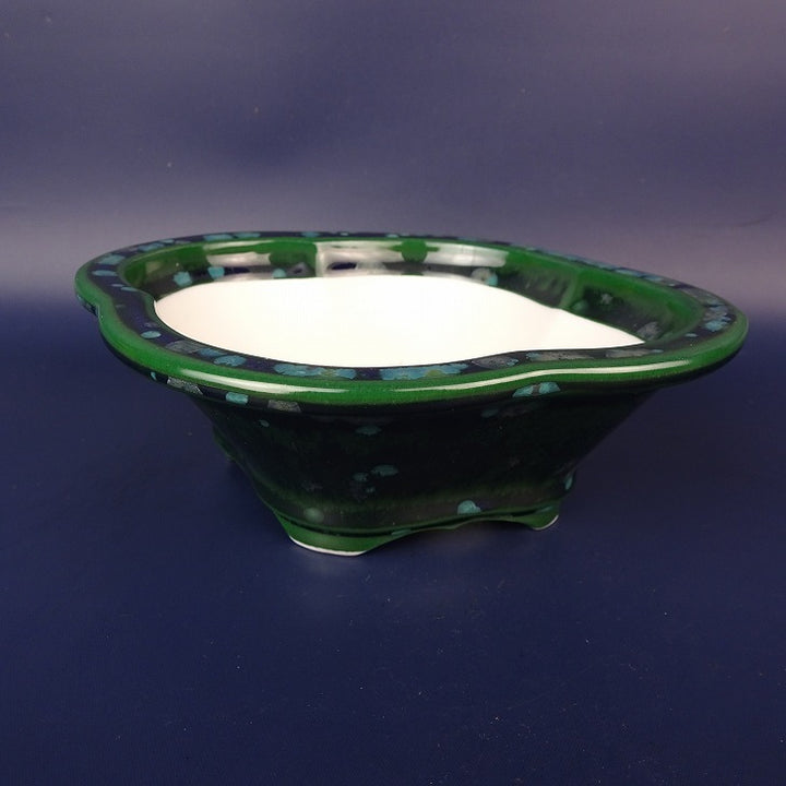 盆栽鉢 平安泉山 小型 長辺 約15.3cm 木瓜鉢 外縁 緑結晶 釉薬 新品 u1198431554