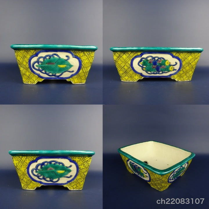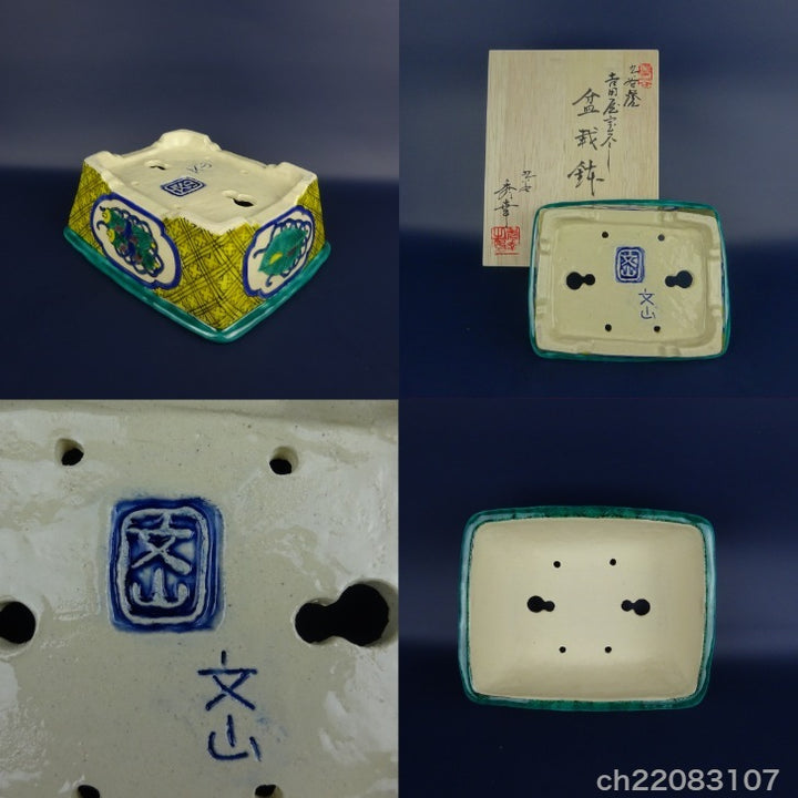 盆栽鉢 文山 越前文山 ボデー 九谷画 九谷 秀幸 小型 長辺 約17.5cm 長方鉢 色絵 観賞用 新品 c1198405039