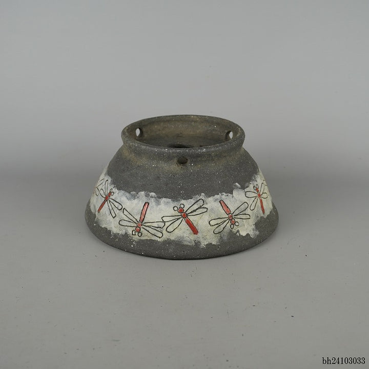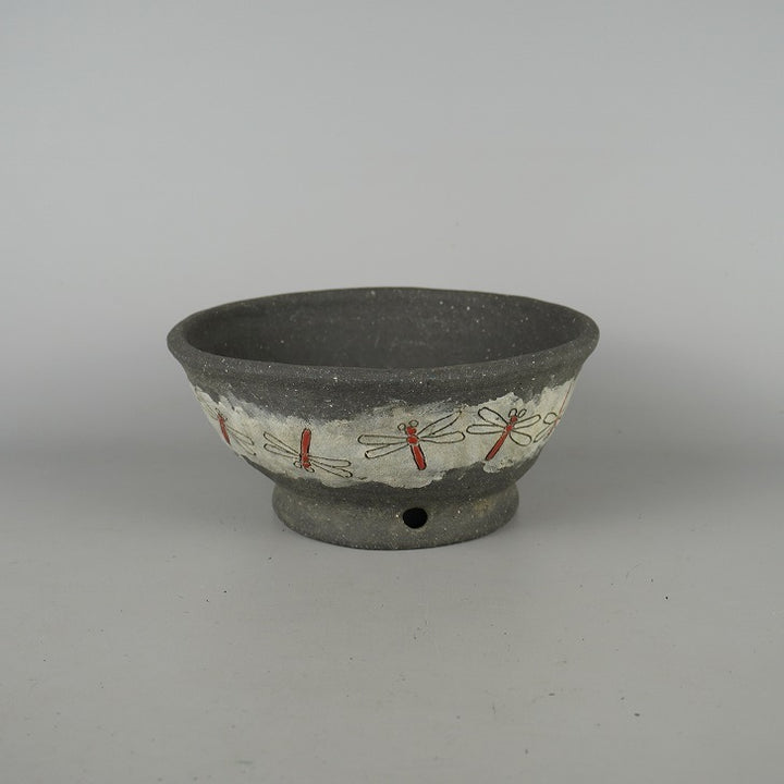 盆栽鉢 文山 越前文山 中型 長辺 約 21.3cm 鯖江園芸 丸鉢 色絵 蜻蛉 とんぼ トンボ 観賞用 現品 新品 品名文山 越前文山...