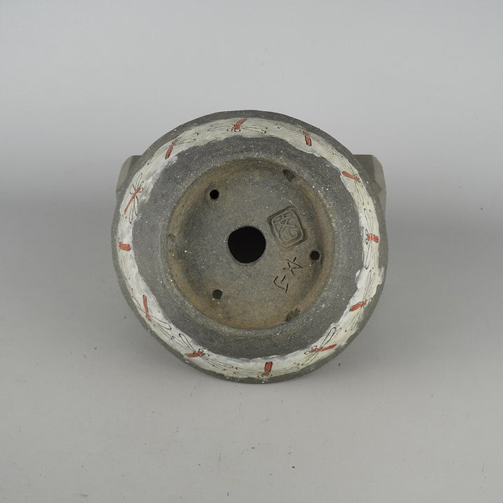 盆栽鉢 文山 越前文山 中型 長辺 約 21.3cm 鯖江園芸 丸鉢 色絵 蜻蛉 とんぼ トンボ 観賞用 新品 g1198414694