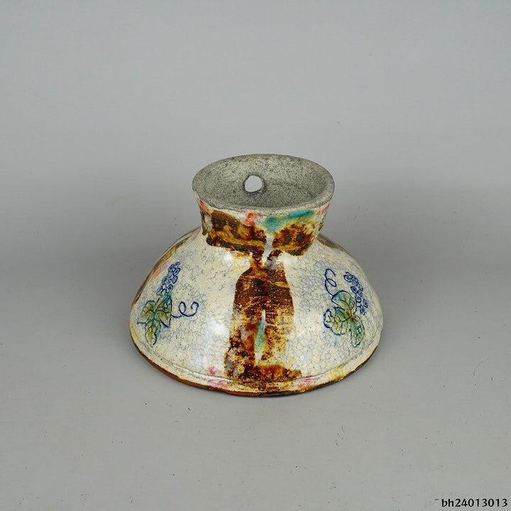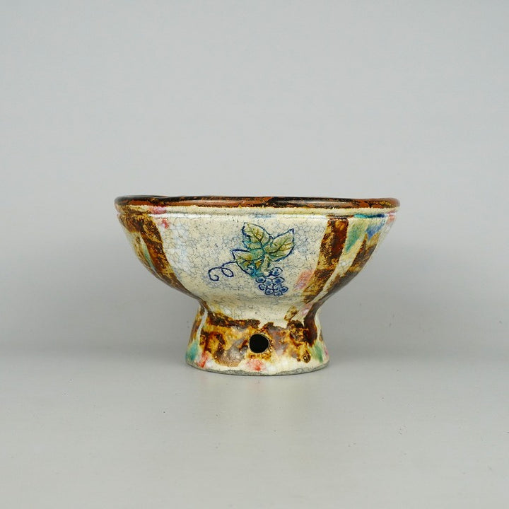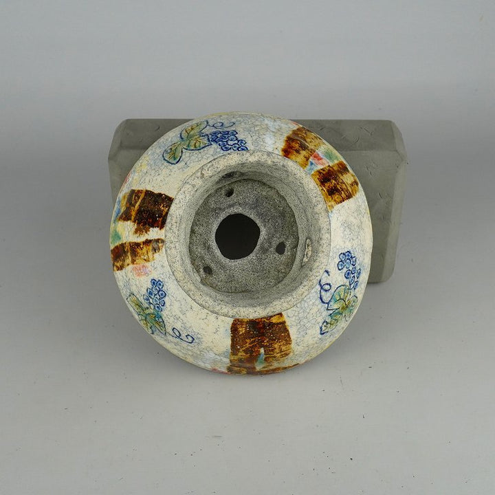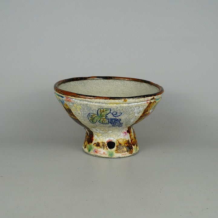 盆栽鉢 文山 越前文山 小型 長辺 約18cm 鯖江園芸 丸鉢 色絵 ぶどう 葡萄 ブドウ 高杯 釉薬 観賞用 新品 d1198427656