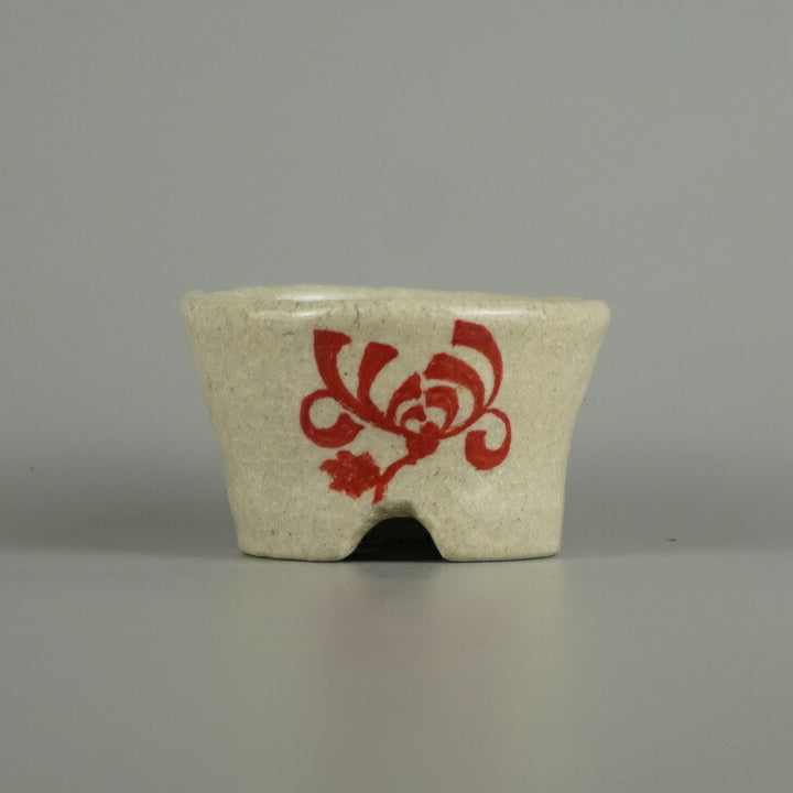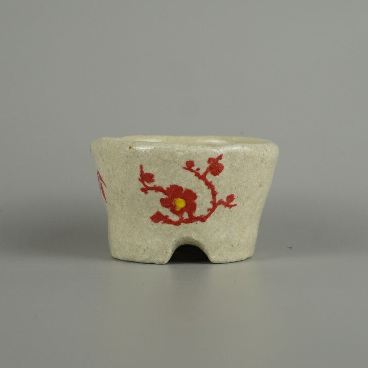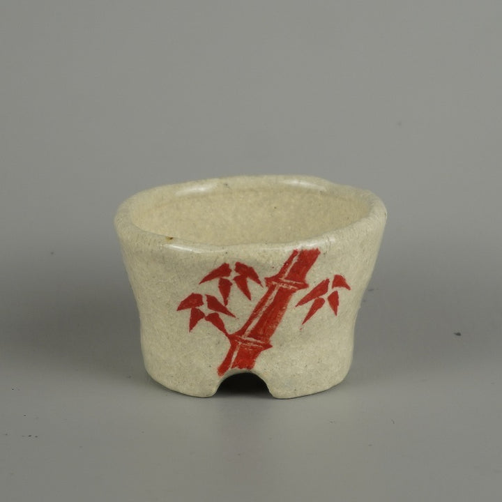 盆栽鉢 文山 越前文山 小鉢 長辺 約 6.4cm 丸鉢 赤絵 竹 笹 花 はな ハナ 鑑賞 観賞用 新品 k1209395657