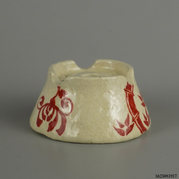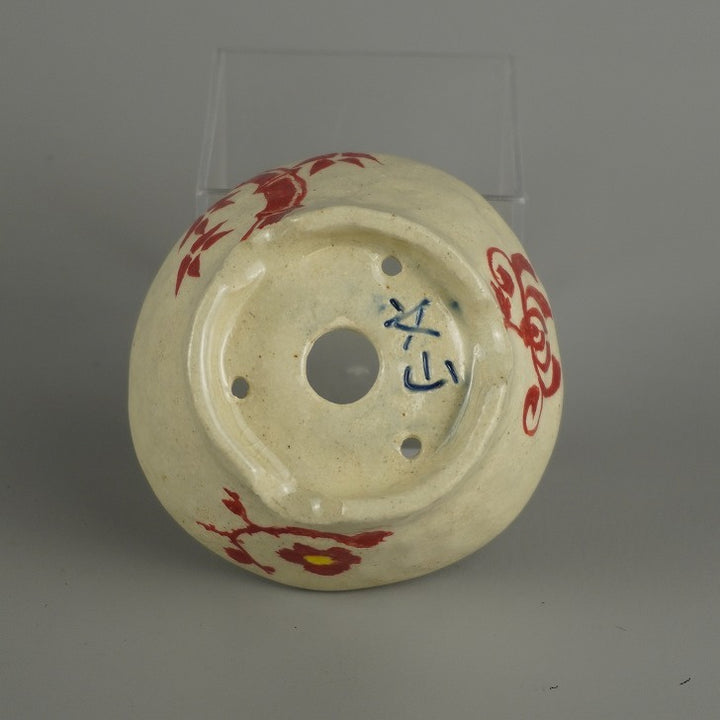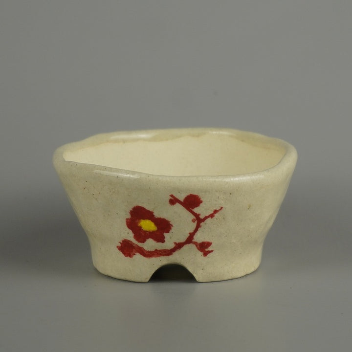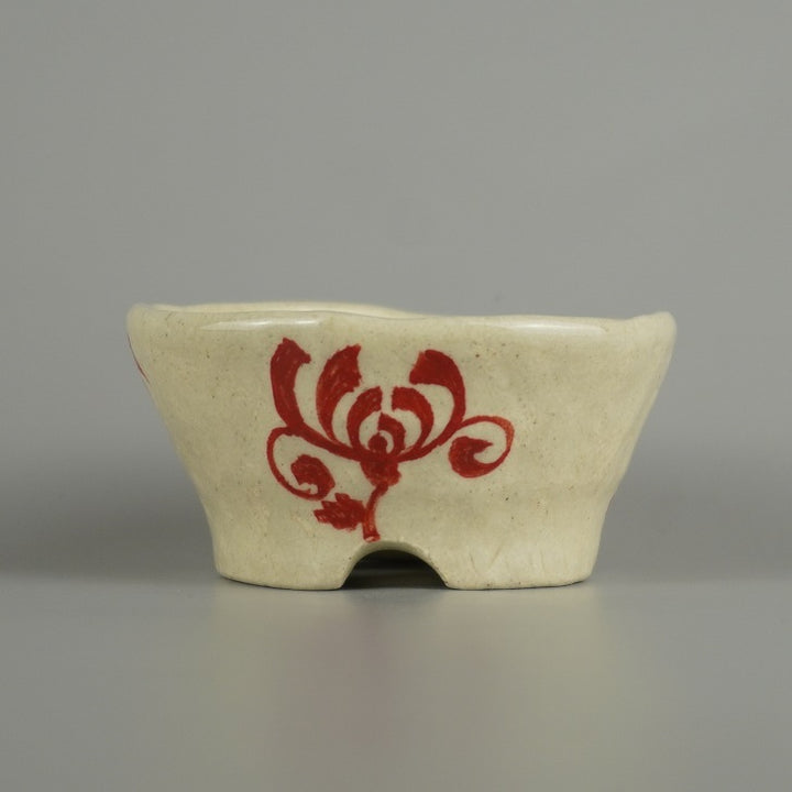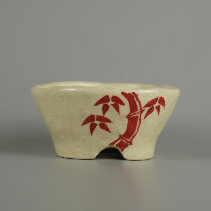 盆栽鉢 文山 越前文山 小鉢 長辺 約 8.2cm 丸鉢 赤絵 竹 笹 花 はな ハナ 鑑賞 観賞用 新品 m1207543456