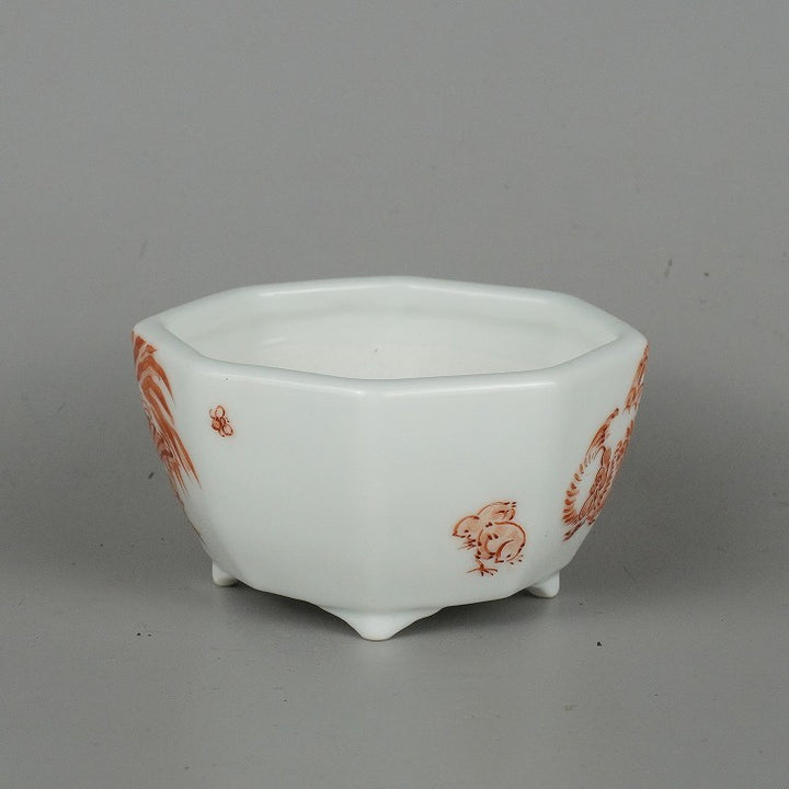 盆栽鉢 春嘉 はるよし 小鉢 長辺 約8cm 八角鉢 赤絵 矮鶏 チャボ 鶏 鳥 観賞用 新品 m1198407874