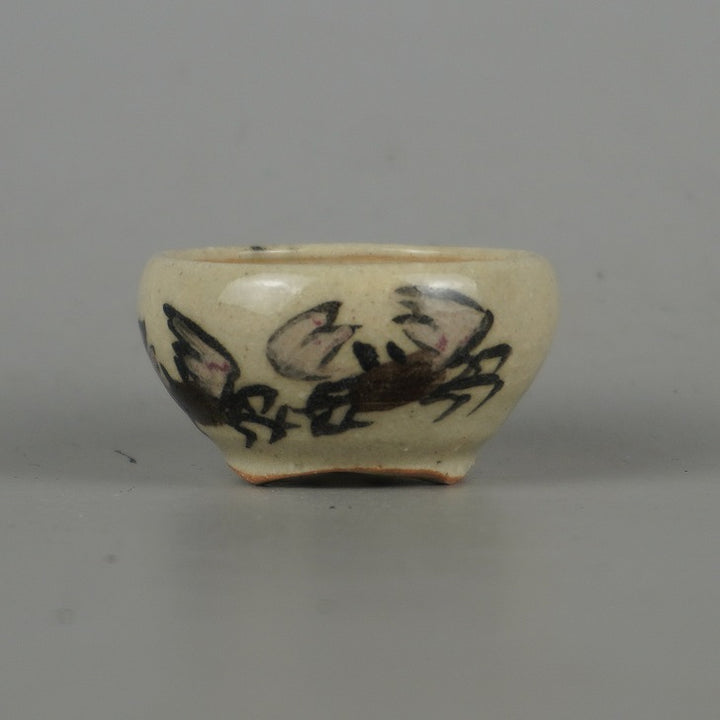 盆栽鉢 是好 矩 豆鉢 長辺 約4.2cm 丸鉢 色絵 蟹 かに カニ ミニ鉢 観賞用 新品 n1198409278