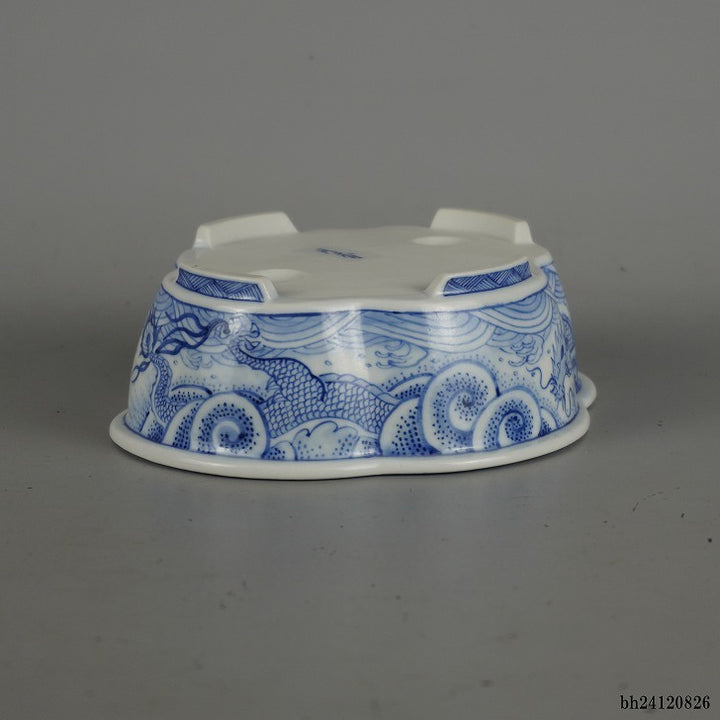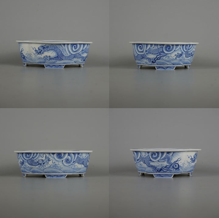 盆栽鉢 月香 小型 長辺 約14cm 木瓜鉢 染付 龍図 箱付 観賞用 現品 新品 品名月香(箱付)...
