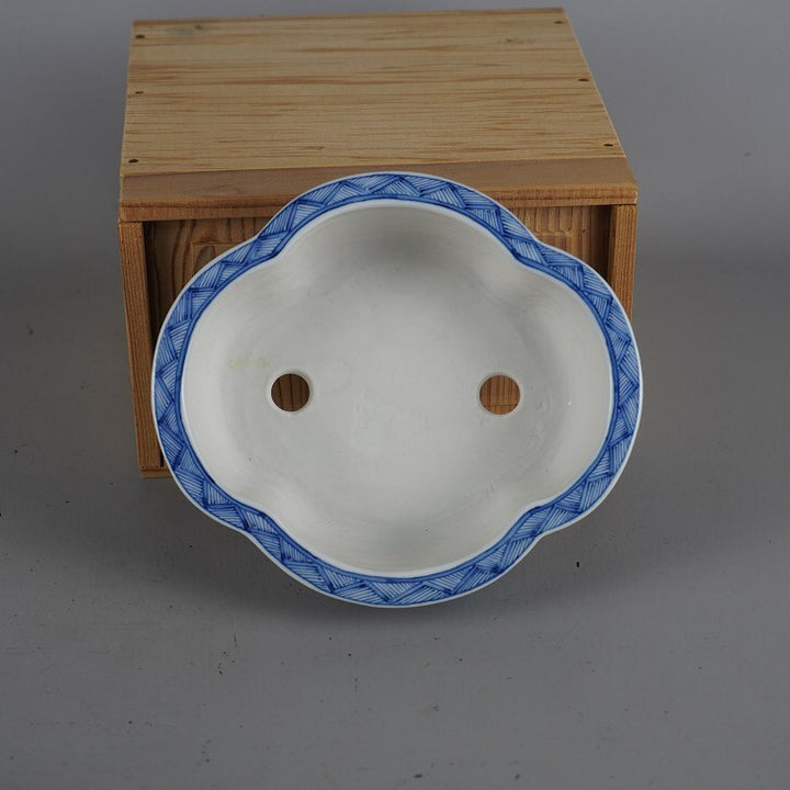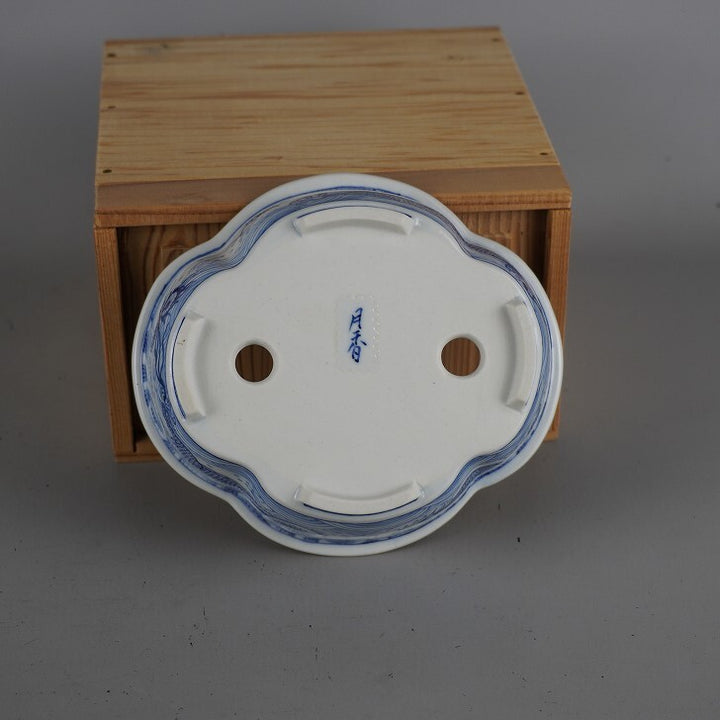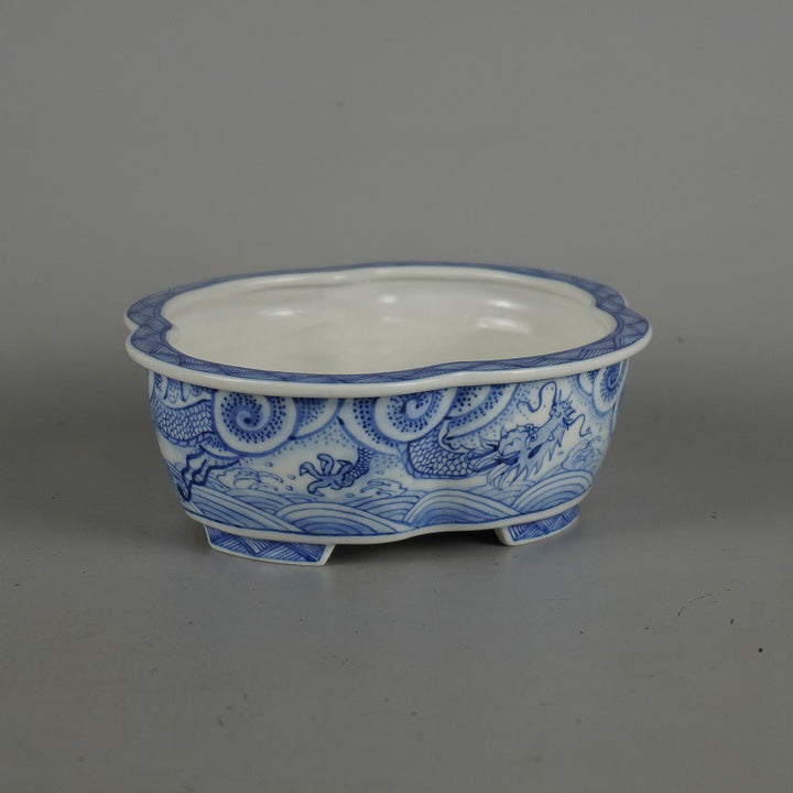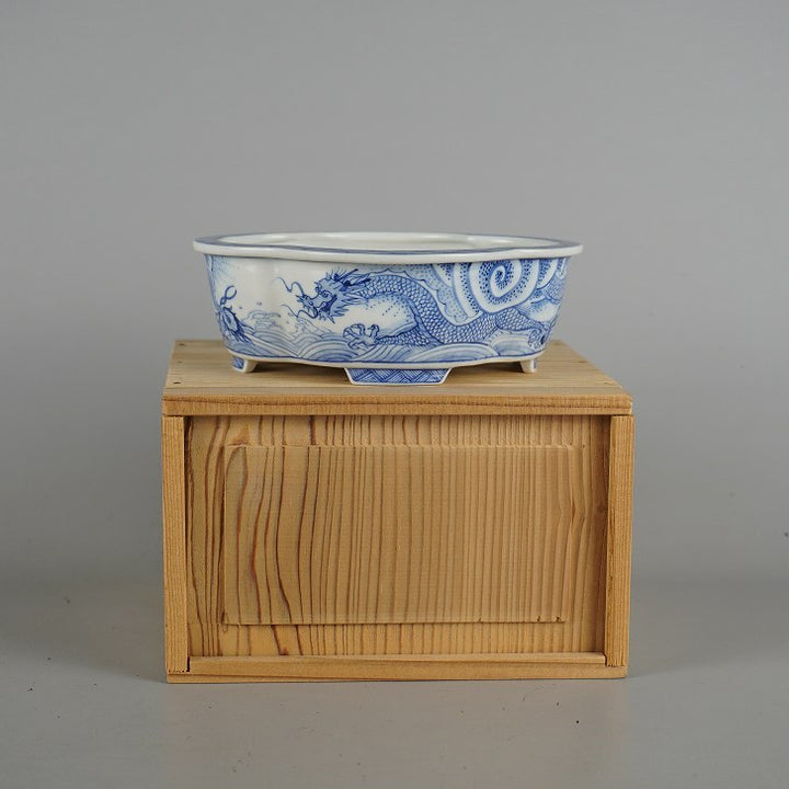 盆栽鉢 月香 小型 長辺 約14cm 木瓜鉢 染付 龍図 箱付 観賞用 新品 h1198423887