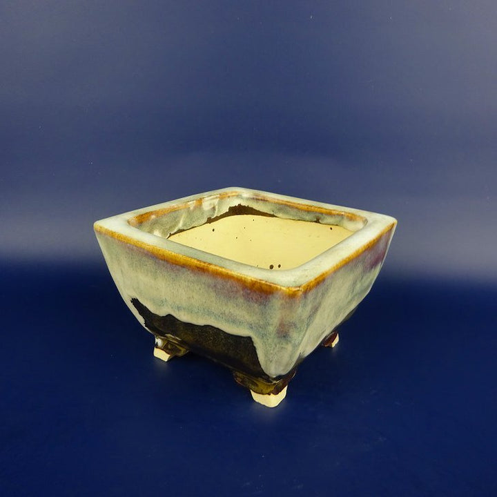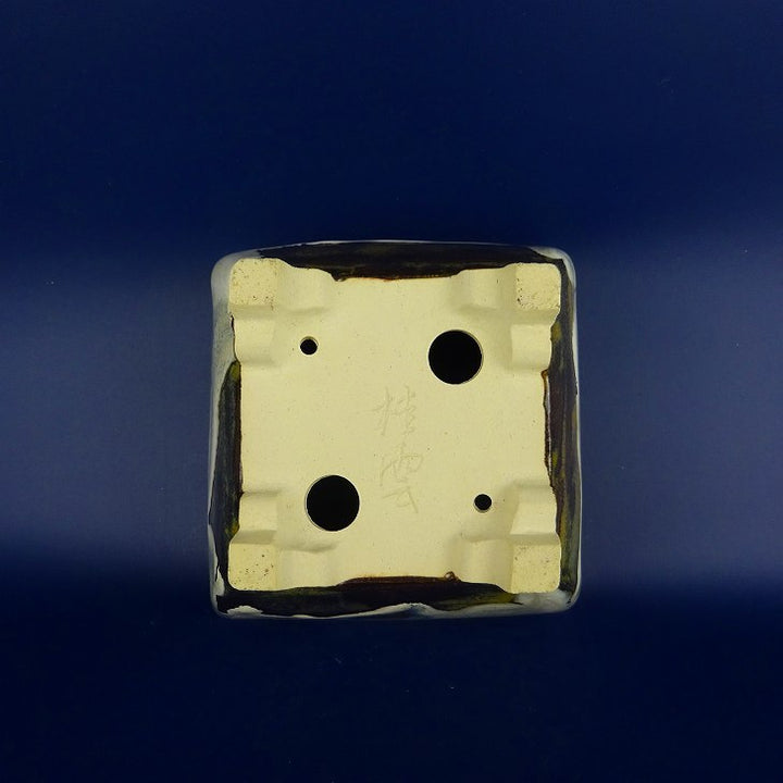盆栽鉢 桂雲 福田桂雲 小型 長辺 約 12cm 正方鉢 釉薬 新品 s1198415069