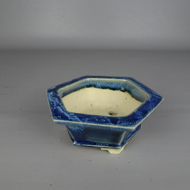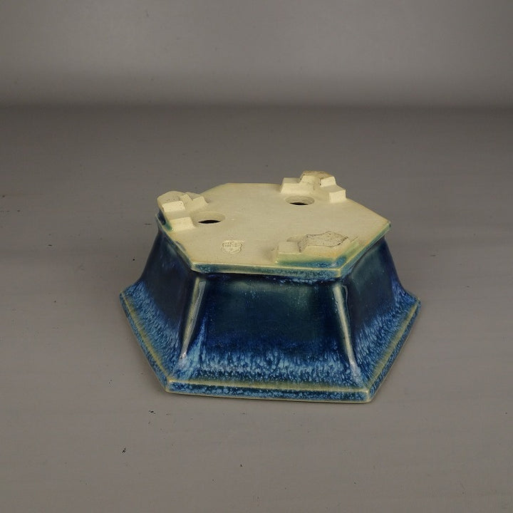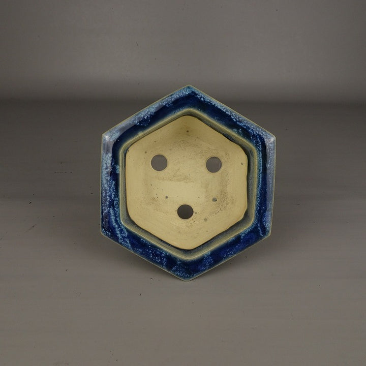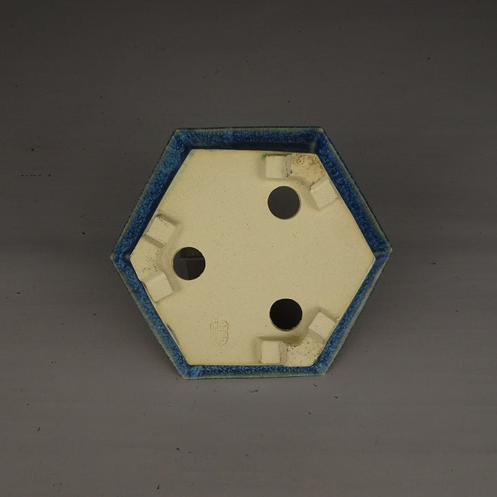盆栽鉢 桂雲 福田桂雲 小型 長辺 約 14cm 六角鉢 外縁 釉薬 新品 o1203468289