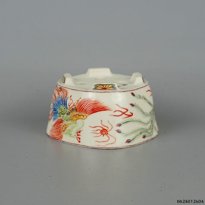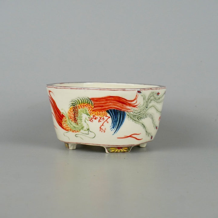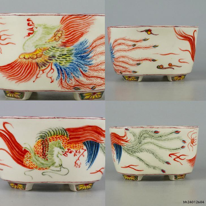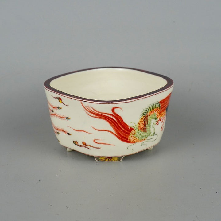 盆栽鉢 梢風 小型 長辺 約10.8cm 正方鉢 色絵 鳳凰 鳥 観賞用 新品 q1198419152