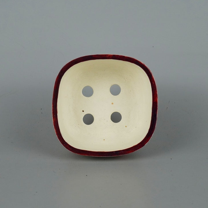 盆栽鉢 梢風 小型 長辺 約10.8cm 正方鉢 色絵 鳳凰 鳥 観賞用 現品 新品 品名梢風...