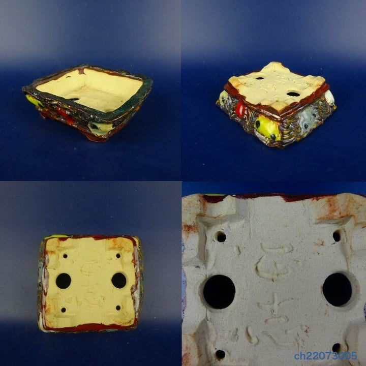 盆栽鉢 正志 古本正志 段足 長方鉢 蟹 釉薬 観賞用 新品 m1198412502
