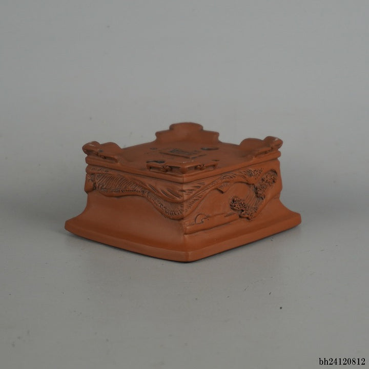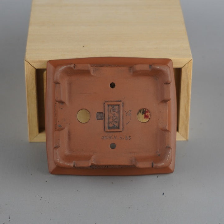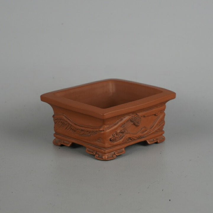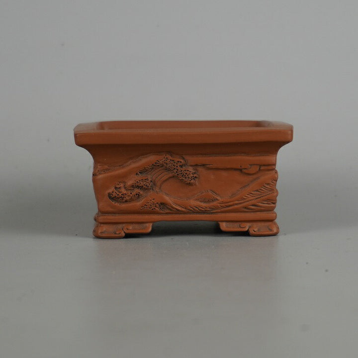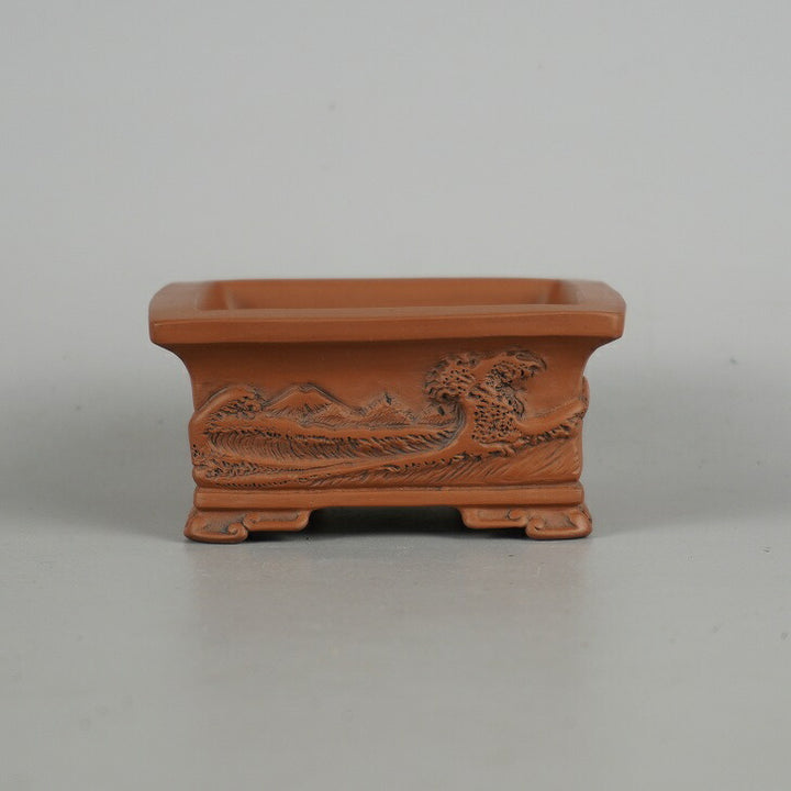 盆栽鉢 河田 義辰窯 小鉢 長辺 約9.5cm 長方鉢 外縁 浮彫 北斎 「神奈川沖浪裏」共布 共箱 観賞用 新品 h1198423575