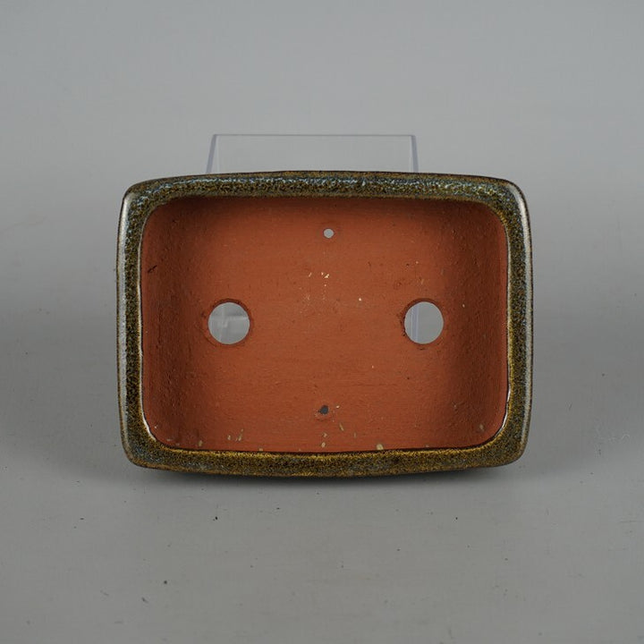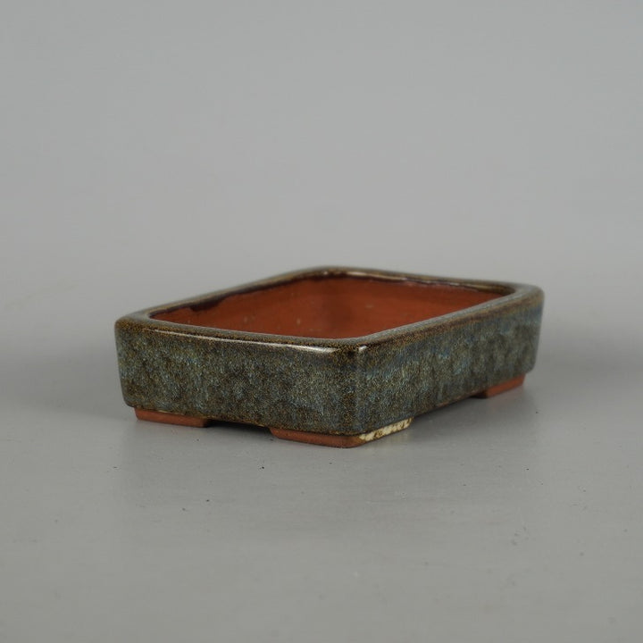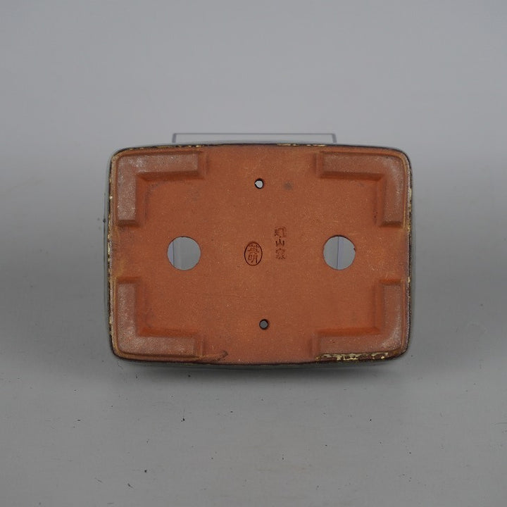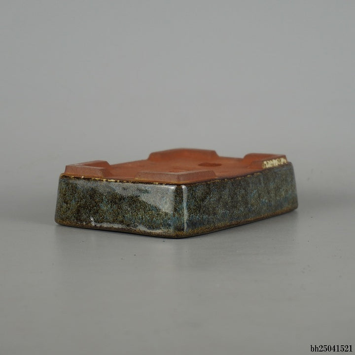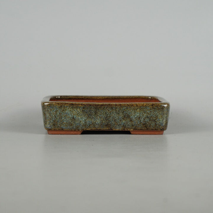 盆栽鉢 燿山窯 英明 小型 長辺 約 14cm 長方鉢 ナマコ 釉薬 現品 新品 本名 清水英明 父・燿山は盆器職人で常滑でも有数の釉薬大家。 製品は約50cmくらいまでの小、中品釉物主で基本的に丸鉢はロクロ、それ以外の盆器は押型で作られる。押型は厚めに型取りして自ら削りなおす。猫足、絵付け、泥色鉢など多彩で一品制作に近いものと量産品がある。...