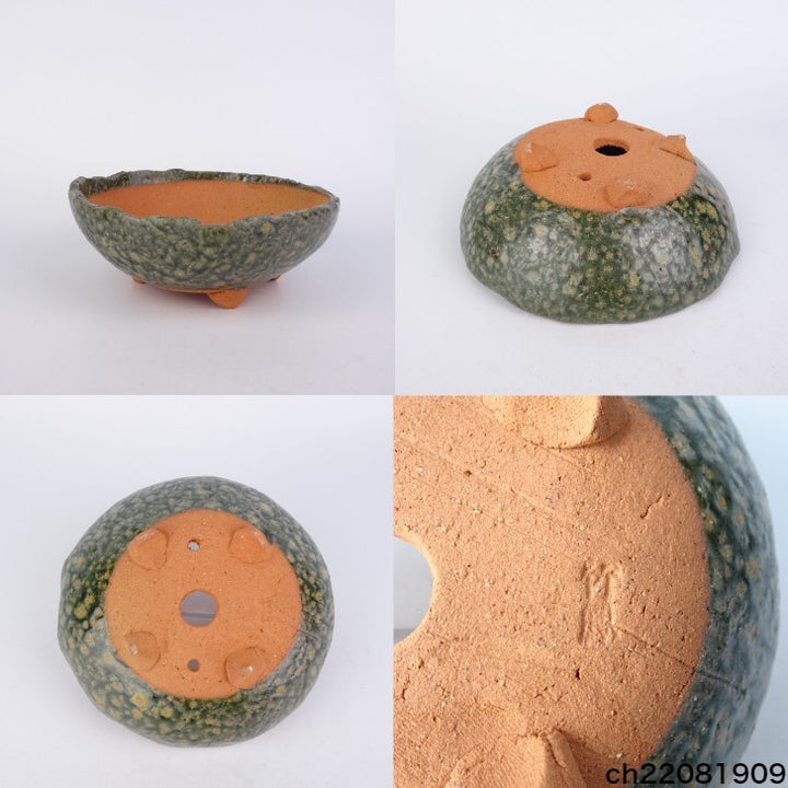 盆栽鉢 竹鳳 小型 長辺 約13cm 丸鉢 釉薬 数量物 新品 職人さんが1つ1つ丁寧に作り上げた鉢です。...