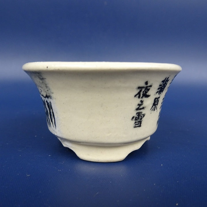 盆栽鉢 紀伊 小鉢 長辺 約5.7cm 丸鉢 東海道 五十三次之内 蒲原 夜之雪 染付 人物 風景画 観賞用 新品 t1198409089