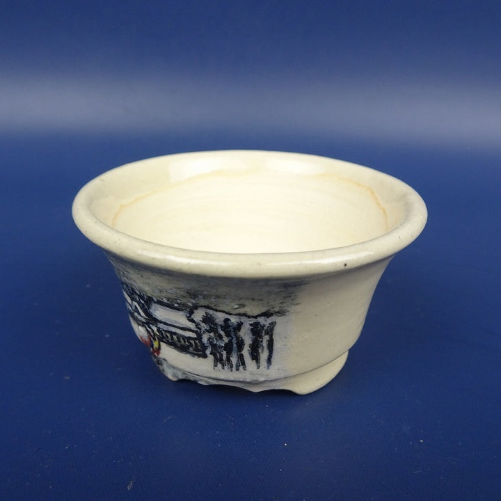 盆栽鉢 紀伊 小鉢 長辺 約5.7cm 丸鉢 染付 人物 風景画 現品 新品 本名 豊田美保子 第16回小鉢作家展絵付けの部銀賞受賞。 尼崎市で岡地創造倶楽部を主催。陶芸教室を行い現在は絵付け鉢を主体に作陶しています。...