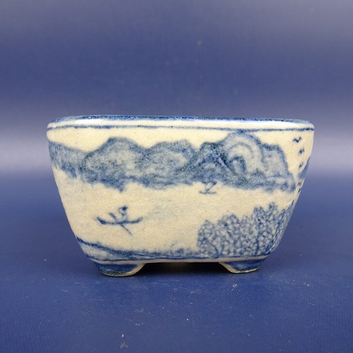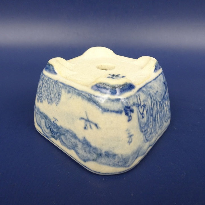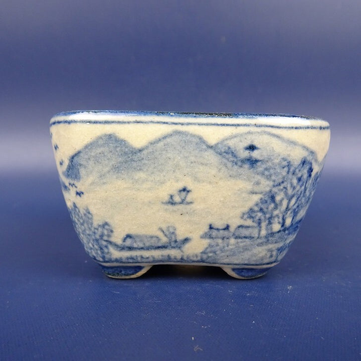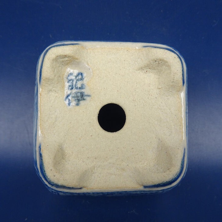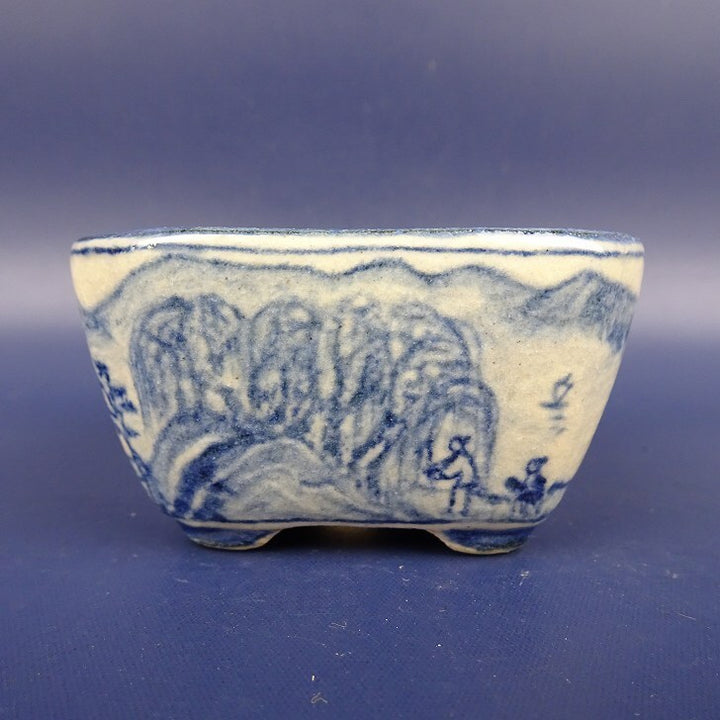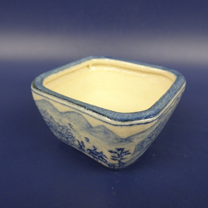 盆栽鉢 紀伊 小鉢 長辺 約6cm 正方鉢 染付 風景 人物画 観賞用 新品 n1198410326
