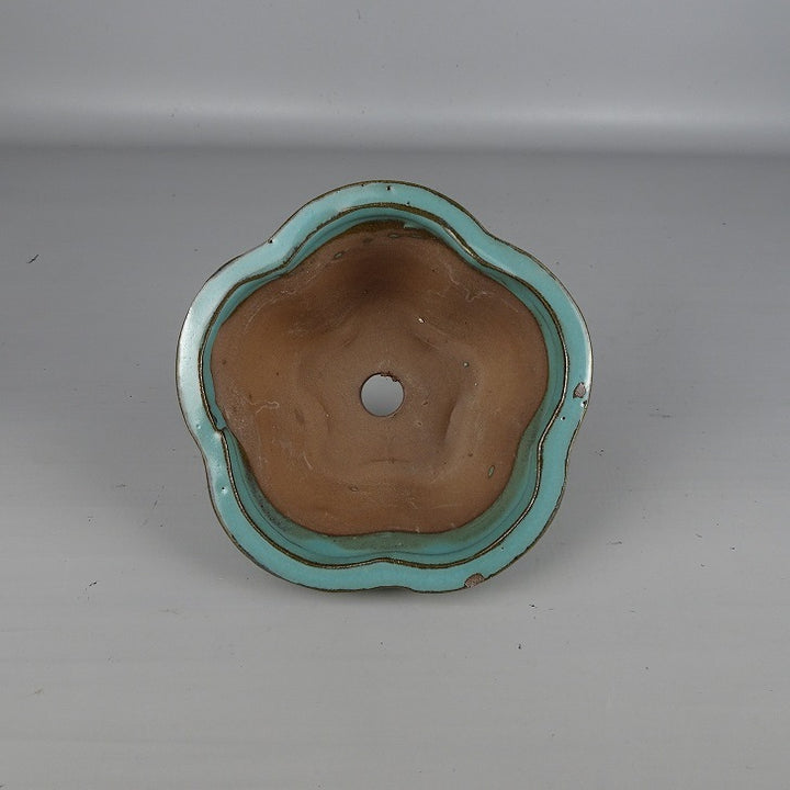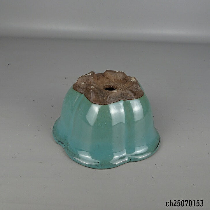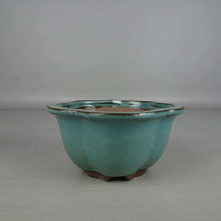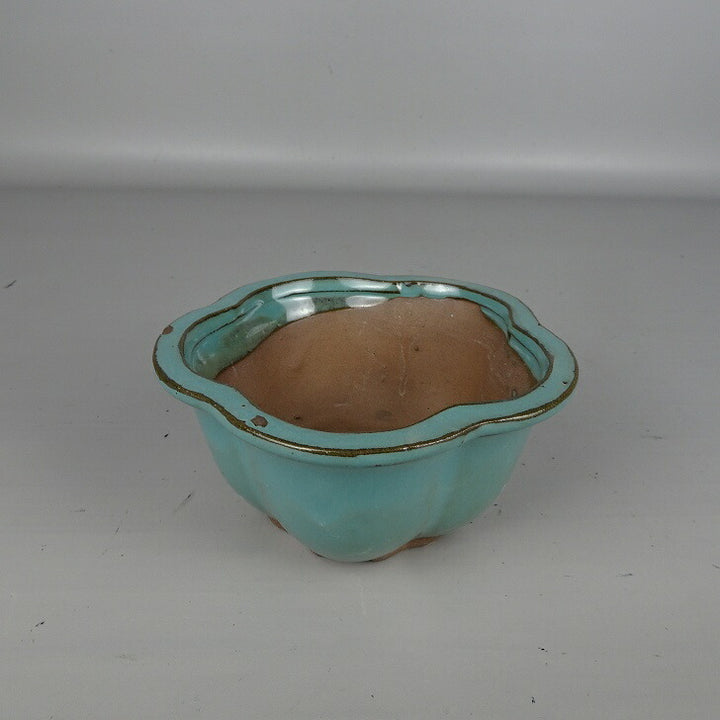 盆栽鉢 落款なし 小型 長辺 約 13cm 花形鉢 外縁 釉薬 中国鉢 新品 数量物 f1202679095