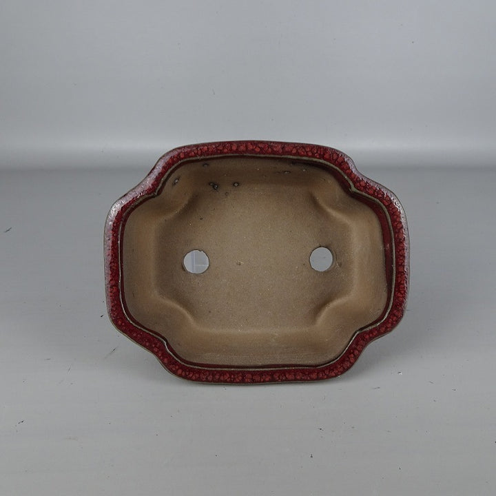 盆栽鉢 落款なし 小型 長辺 約 16cm 長方鉢 外縁 隅入 釉薬 中国鉢 新品 数量物 j1200293327