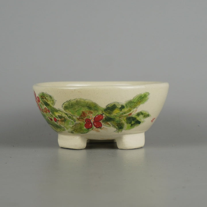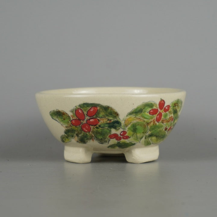 盆栽鉢 蝉山 小型 長辺 約 12.3cm 丸鉢 色絵 果実 木の実 植物 観賞用 新品 b1198415948
