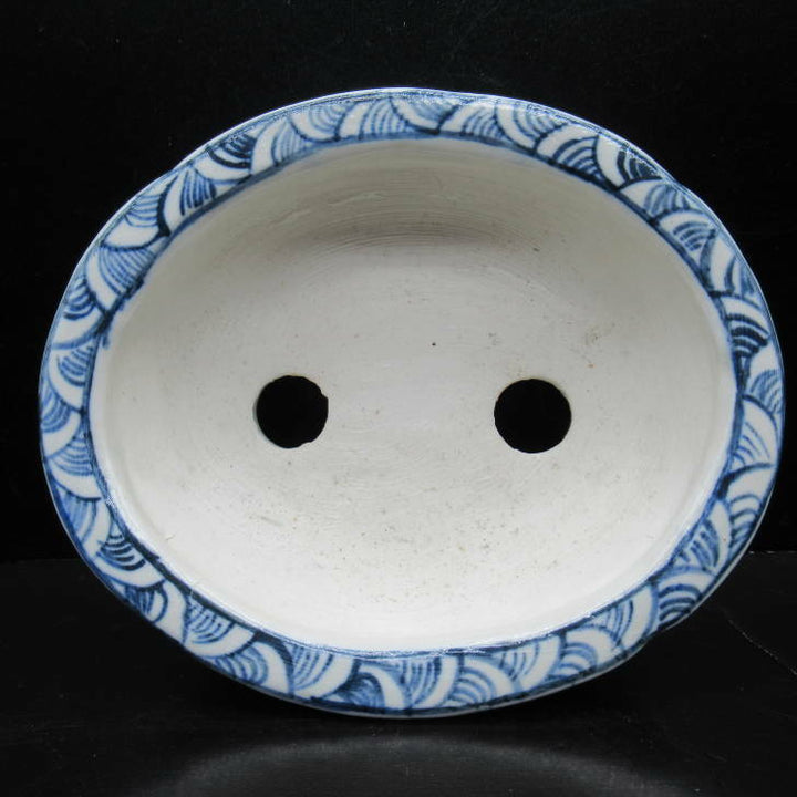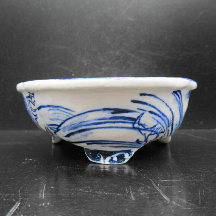 盆栽鉢 谷 嵐山 小鉢 長辺 約11.3cm 木瓜鉢 染付 龍 落款 現代作家 観賞用 新品 現品 谷嵐山造 本名/谷 弘之(埼玉県生まれ) シュミの盆栽が高じて小鉢制作を手掛け、昭和54年に仲間6人で共同窯を築窯し、禄楽窯と名付ける。 陶号は禄楽嵐山の方が通っているかもしれない。 60年に全国アマチュア小鉢作家展で会長賞、第2回BONSAIの器展で特別奨励賞、第1回現代小鉢作家展で奨励賞を受賞する。...