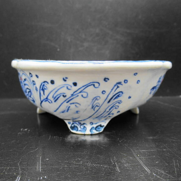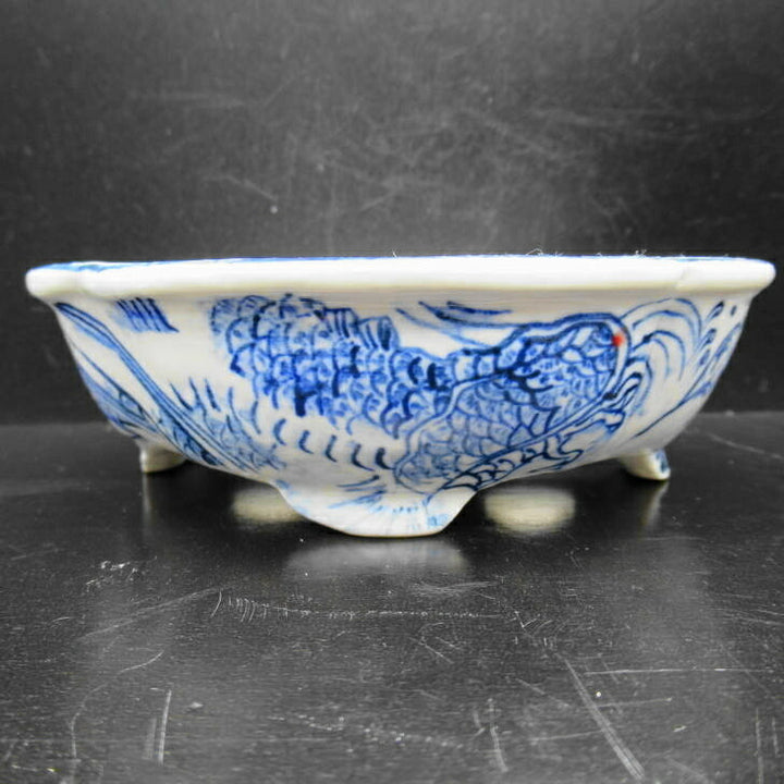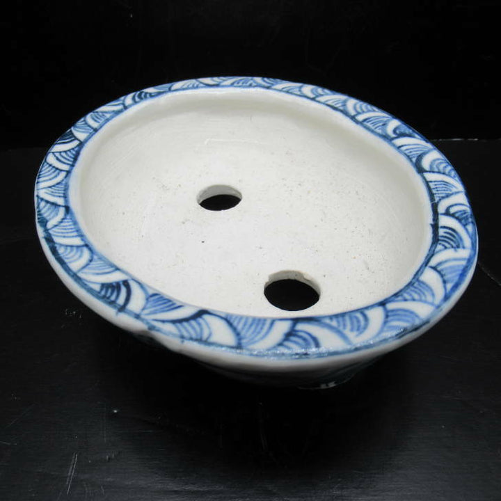 盆栽鉢 谷 嵐山 小鉢 長辺 約11.3cm 木瓜鉢 染付 龍 落款 現代作家 観賞用 新品 m1198412901