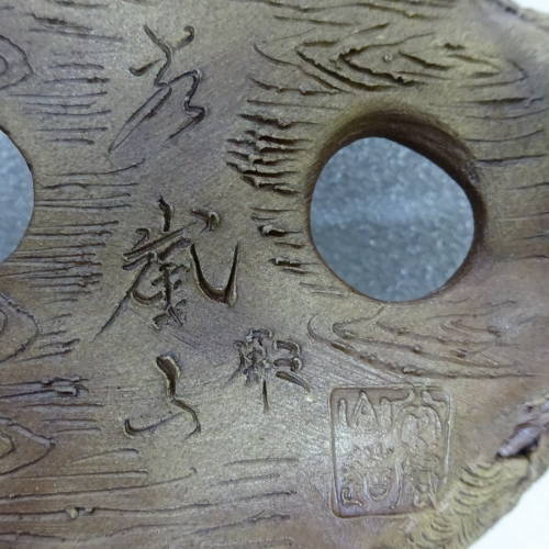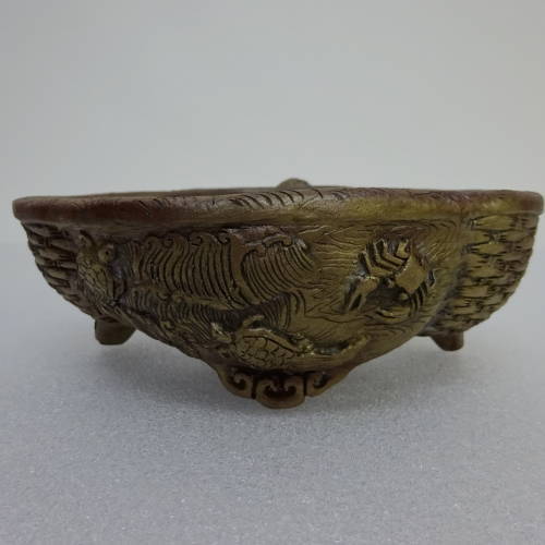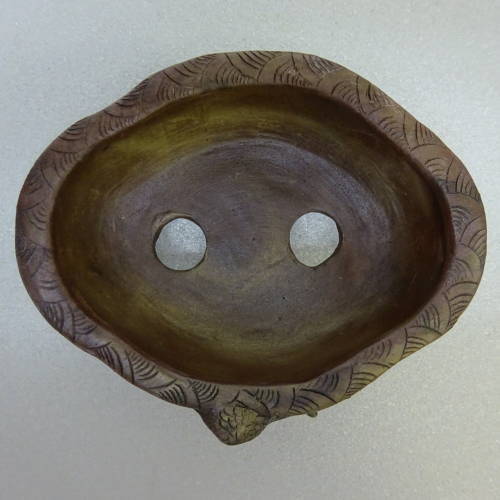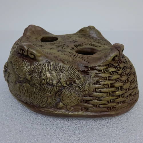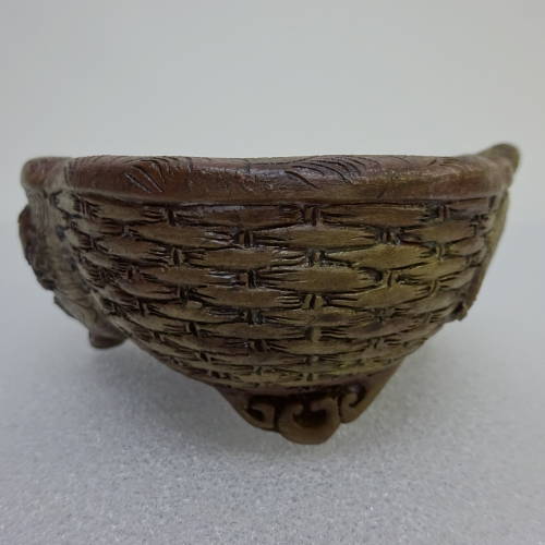 盆栽鉢 谷 嵐山 紫泥竜,亀,蟹浮彫籠目外縁鉢 新品 x1198414769