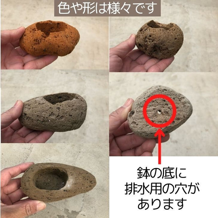 盆栽鉢 軽石 付石 盆栽 苔盆栽 テラリウム bonsai 山野草 セレクト 数量物 10個セット 表面が多孔質なため、空気や水を通しやすく、鉢内が蒸れにくい軽石鉢です。 天然(原石)の軽石を鉢に加工してあるので乾燥に強い植物や盆栽、山野草などの自然な風景の表現に最適です。 色合い、形状、サイズ等一品ずつ異なります。 ご了承の上ご注文下さいますようお願いいたします。...