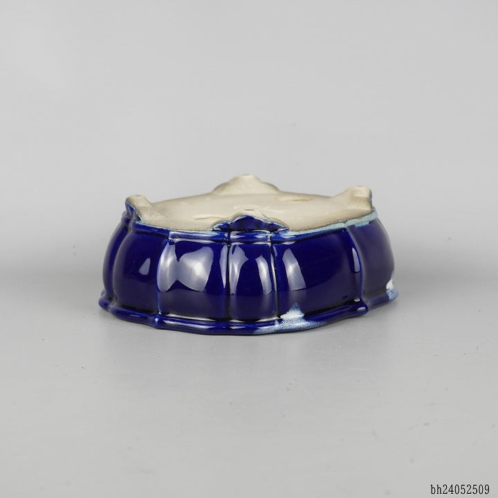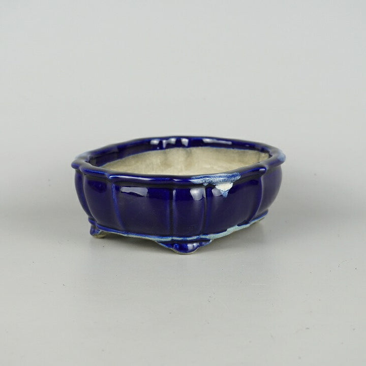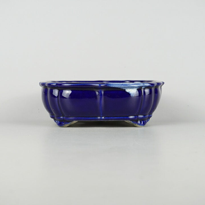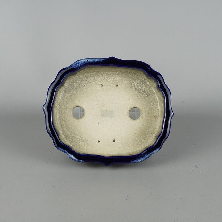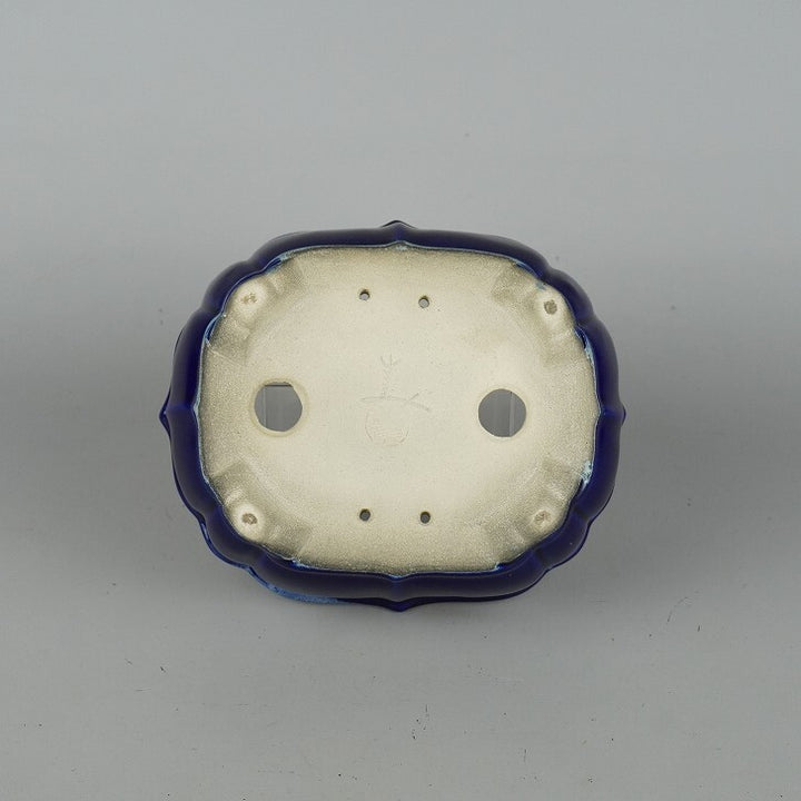 盆栽鉢 里美 寺畑陶園 小型 長辺 約17.3cm 剣 木瓜鉢 縁付 下帯 瑠璃 釉薬 新品 数量物 商品画像は見本になります。 ※数量物の焼き物の為、サイズ等に若干の差異がある場合がございます。 その旨ご了承願います。...
