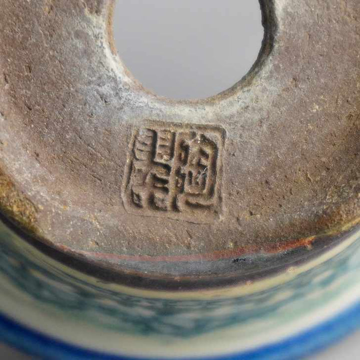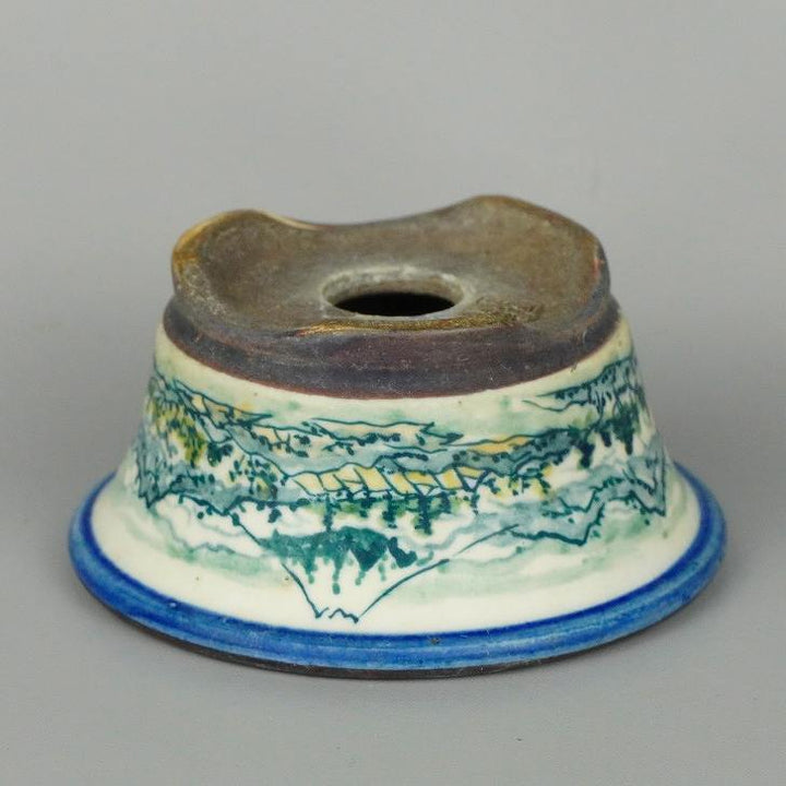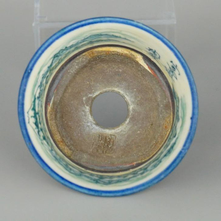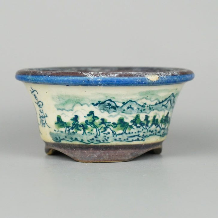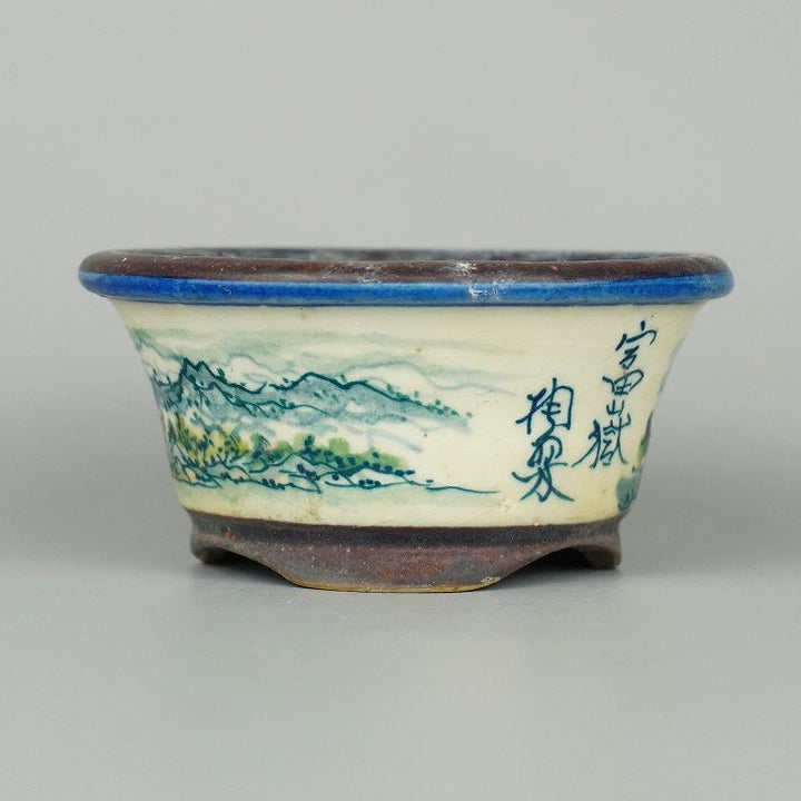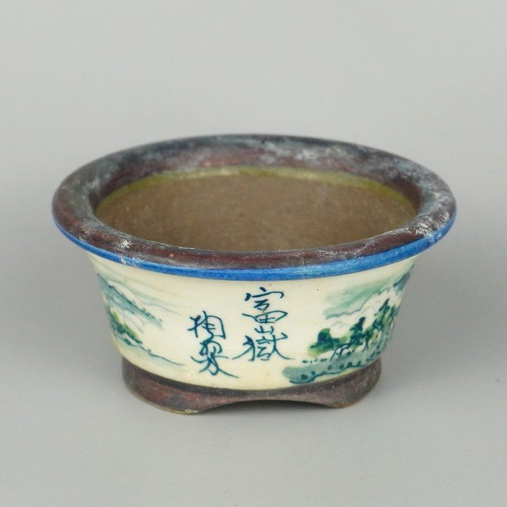 盆栽鉢 陶翠 陶翠筆 色絵 山水図 外縁 丸鉢 中古鉢 v1198438378