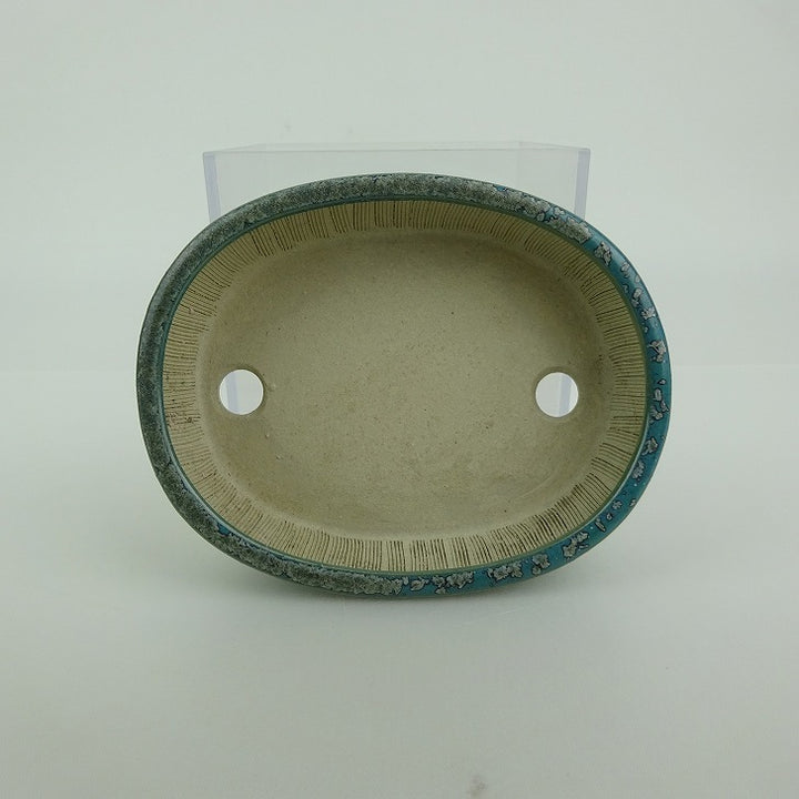 盆栽鉢 青香 小型 長辺 約 10cm 楕円 鉢 釉薬 現品 品名青香...