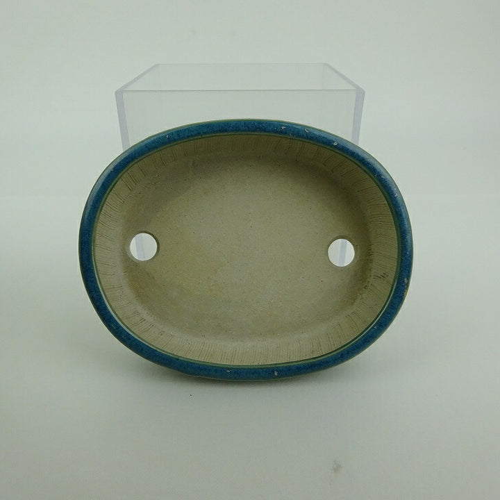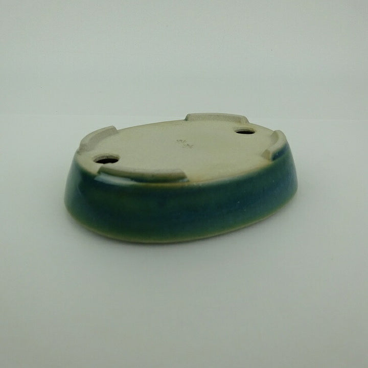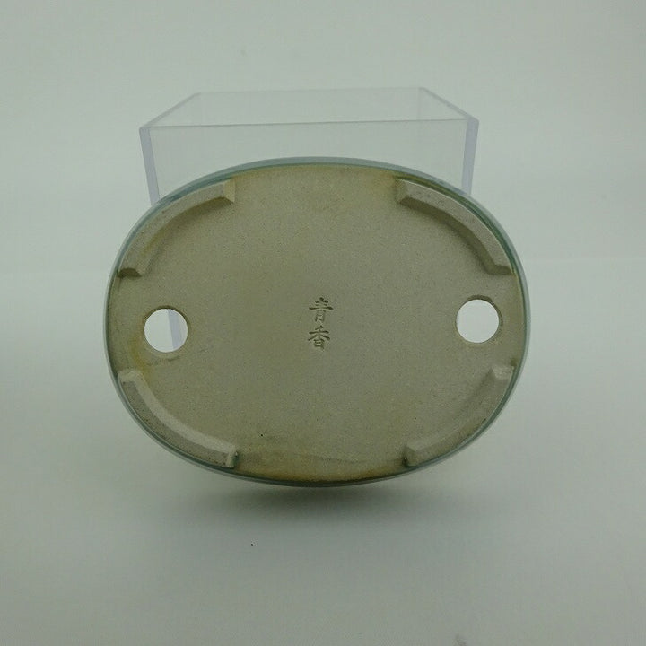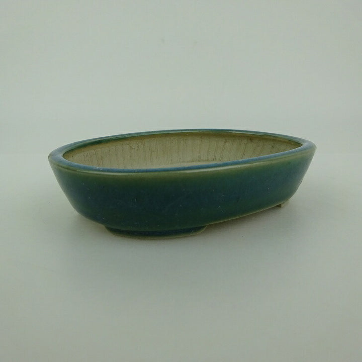 盆栽鉢 青香 小型 長辺 約10cm 楕円鉢 釉薬 u1198422794